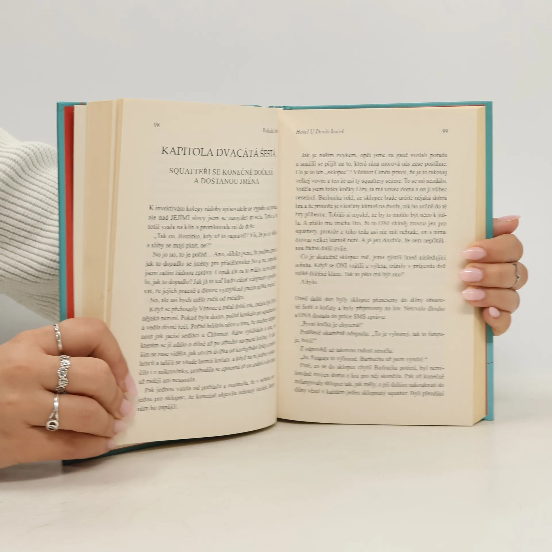 Soužití lidí a koček pohledem čtyřnohých miláčků. Kdo prožil pár dní, týdnů nebo dokonce let s kočkami, ten nikdy nezapomene. Vztahy se navazovaly, vyvíjely, kočky přicházely, odcházely, a zanechávaly stopu. Drobných příhod přibývalo, a aby neupadly v zapomnění, vznikl deníček kočky Rozárky. A právě z ní se vyklubala kočičí spisovatelka. Pohodlně se usaďte, uvařte si kávu nebo čaj a začtěte se do jejího deníčku. Jste zváni do Hotelu U Devíti koček.