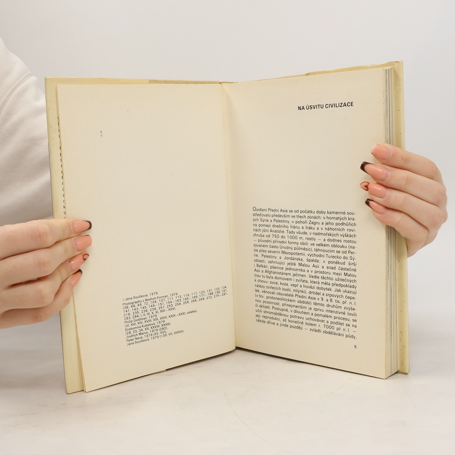 Formou výkladu k fotografiím nejtypičtějších archeologických památek přibližuje autorka vyspělé starověké civilizace Sumeru, Akkadu, Babylóníe, Asýrie, Malé Asie, Sýrie a Íránu. Ukázky staveb, plastik, předmětů denní potřebypísemných záznamů v kameni a hlíně dovolují nahlédnout do způsobu života, náboženských představ a zábavy tehdejších obyvatel. Jednotlivé oddíly jsou uvedeny přehledem kulturně historického vývoje dané oblasti.