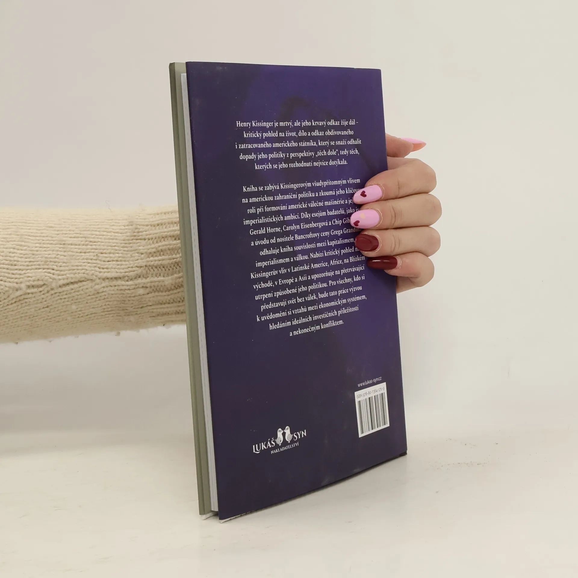 Je-li americký zahraničněpolitický establishment velkolepou citadelou, Henry Kissinger je přízrakem, který straší v jeho zaprášených chodbách. Po půl století byl všudypřítomnou postavou ve válečných kabinetech a na politických poradách, kde věrně provázel americké impérium při jeho bolestném růstu. Pro několik generací protiválečných aktivistů byl Kissinger ztělesněním zkaženosti americké válečné mašinérie. Svět, který Kissinger vytvořil, je světem, v němž žijeme dnes a kde se ideální investiční podmínky vytvářejí před namířenou hlavní pistole. Globální kapitalismus a hegemonii Spojených států dnes podporuje nejmocnější armáda, jaká kdy existovala. Jakákoli politická vize, která má dnes mít smysl, musí podle autorů knihy směřovat k ukončení nekonečných kol válek, které postihují svět v 21. století. A to znamená vzít si na mušku globální kapitalismus, tak jak dnes funguje pod kuratelou Spojených států amerických. Kniha sleduje Kissingerovo působení ve světě – zahrnuje Latinskou Ameriku, Afriku, Blízký východ, Evropu a Asii. Autory jsou levicoví politologové a novináři (“prokazující nepřekonatelnou míru haterství” – z recenze Nitishe Pahwy) jako Gerald Horne, Carolyn Eisenbergová a Chip Gibbons, úvod napsal držitel Bancroftovy ceny Greg Grandin.