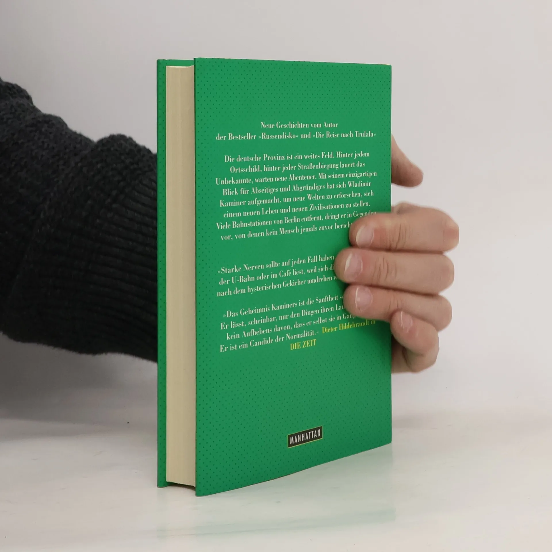 Nichts ist so fremd wie die eigene Heimat, nichts so exotisch wie die deutsche Provinz. Furchtlos durchstreift ein Mann mit einer schwarzen Aktentasche voller Geschichten unter dem Arm die entlegensten Winkel des Landes. Seine Reisen führen ihn nach Weikersheim und Sömmerda, nach Rotenburg an der Wümme oder in das geheimnisumwitterte Waldbröl, dessen Name kein Sterblicher je vernommen hat. Und in Dutzende weiterer Orte, von denen uns ebenfalls nie eine Kunde erreicht hätte, gäbe es nicht ihn: Wladimir Kaminer. Als Forscher und Geschichtenerzähler ist er viele Bahnstationen von Berlin entfernt quer durch die deutsche Provinz unterwegs. Mit klarem Blick, einem unverwüstlichen Sinn für Humor und mit viel Poesie nimmt er sich dieser exotischen Regionen an. Seine Geschichten sind voller unvergesslicher Details und universeller Wahrheiten des menschlichen Daseins. Da ist die Autogrammkarte von Roberto Blanco, die seit Anbeginn der Zeit in jedem Hotel hängt, nur das harmloseste Beispiel der aberwitzigen Sitten und Abgründe deutscher Kleinstädte.