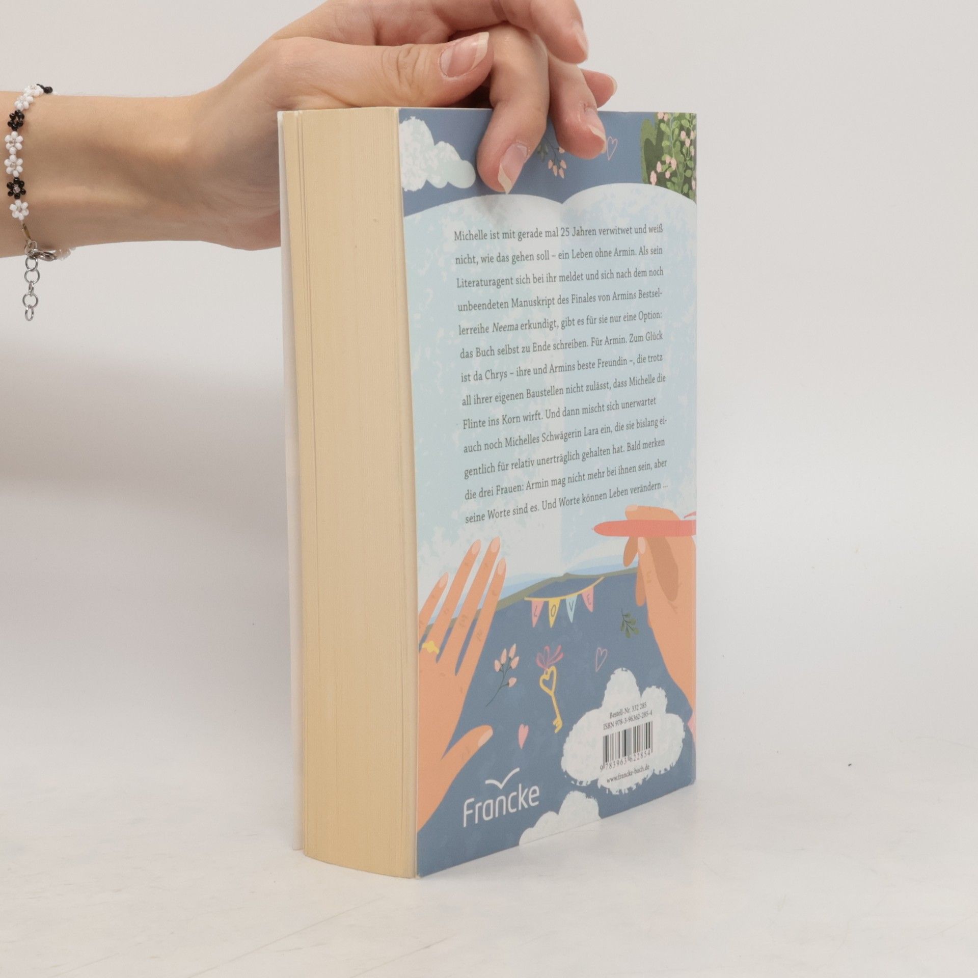 Michelle ist mit gerade mal 25 Jahren verwitwet und weiß nicht, wie das gehen soll – ein Leben ohne Armin. Als sein Literaturagent sich bei ihr meldet und sich nach dem noch unbeendeten Manuskript des Finales von Armins Bestsellerreihe Neema erkundigt, gibt es für sie nur eine Option: das Buch selbst zu Ende schreiben. Für Armin. Zum Glück ist da Chrys – ihre und Armins beste Freundin –, die trotz all ihrer eigenen Baustellen nicht zulässt, dass Michelle die Flinte ins Korn wirft. Und dann mischt sich unerwartet auch noch Michelles Schwägerin Lara ein, die sie bislang eigentlich für relativ unerträglich gehalten hat. Bald merken die drei Frauen: Armin mag nicht mehr bei ihnen sein, aber seine Worte sind es. Und Worte können Leben verändern …