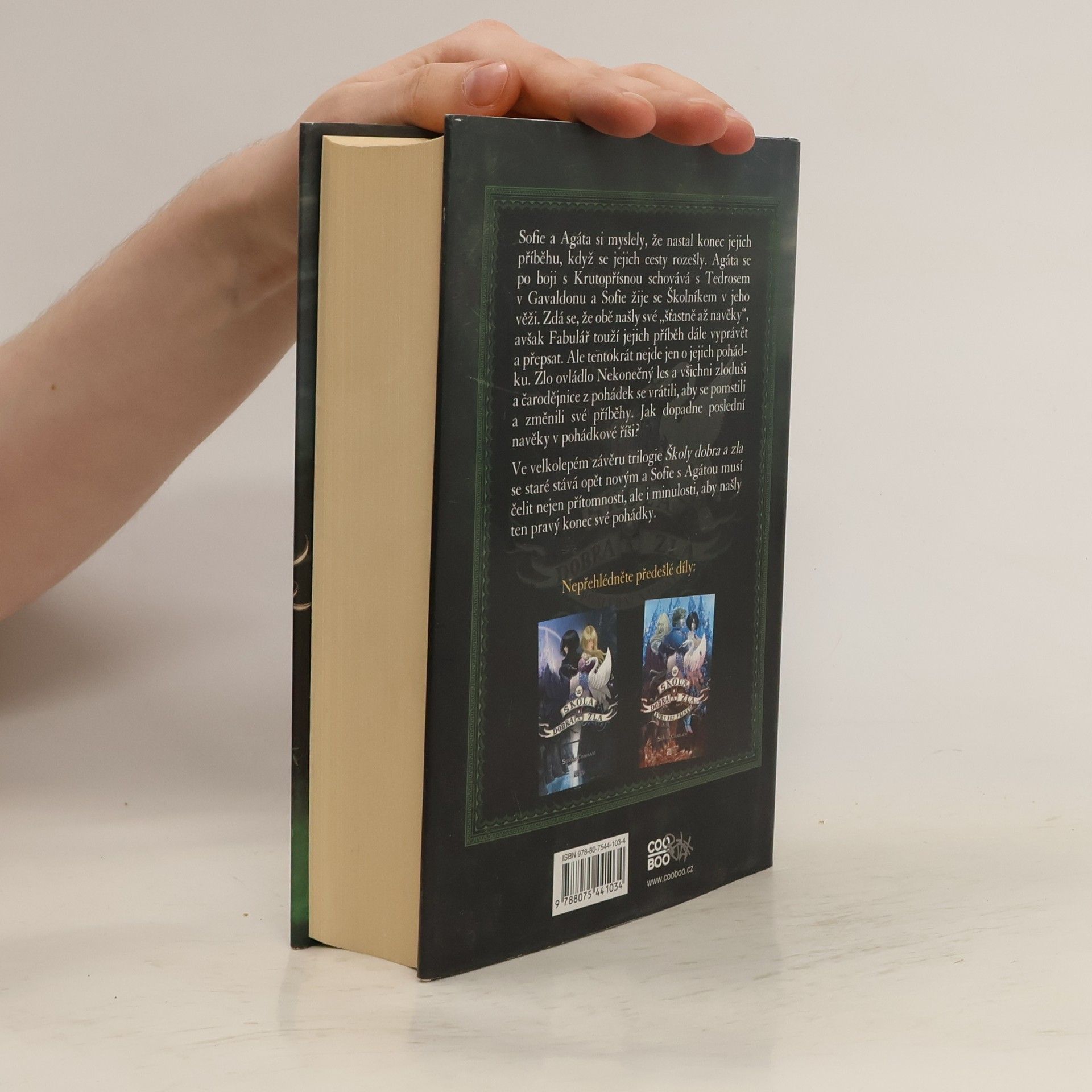 Sofie a Agáta, dříve nejlepší přítelkyně, nyní sokyně, si myslely, že nastal konec jejich příběhu, když se jejich cesty rozešly. Agáta se po boji s Krutopřísnou schovává s Tedrosem v Gavaldonu a Sofie žije se Školníkem v jeho věži. Zdá se, že obě našly své „šťastně až navěky“, avšak Fabulář touží jejich příběh dále vyprávět a přepsat. Ale tentokrát nejde jen o jejich pohádku. Zlo ovládlo Nekonečný les a všichni zloduchové a čarodějnice z pohádek se vrátili, aby se pomstili a změnili své příběhy. Chtějí proměnit svět dobra a zla v temnou říši, které by vládla Sofie, a jen Agáta a Tedros jim stojí v cestě. Jak dopadne poslední navěky v pohádkové říši? Ve velkolepém závěru trilogie Školy dobra a zla se staré stává opět novým a Sofie s Agátou musí čelit nejen přítomnosti, ale i své minulosti, aby našly ten pravý konec své pohádky.