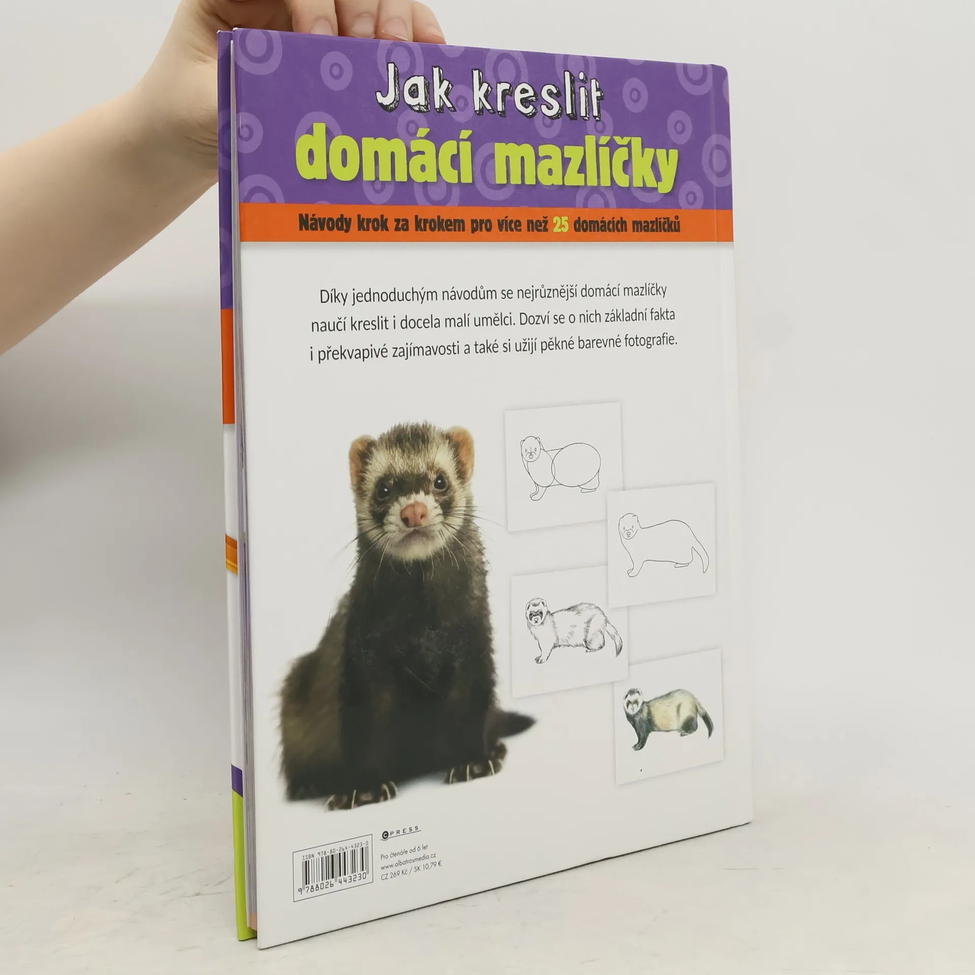Díky jednoduchým návodům se různé zvířecí mazlíčky naučí kreslit i docela malí umělci. Dozví se o nich základní fakta i překvapivé zajímavosti a také si užijí pěkné barevné fotografie.