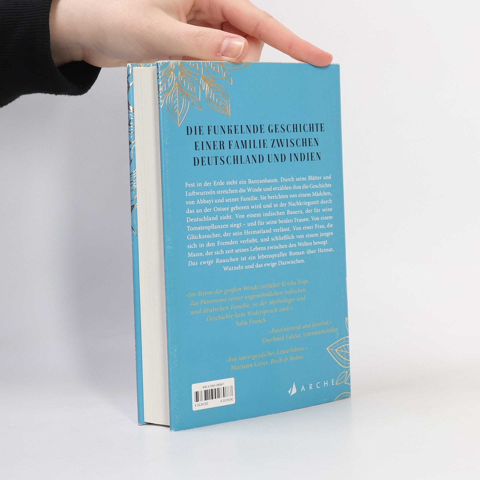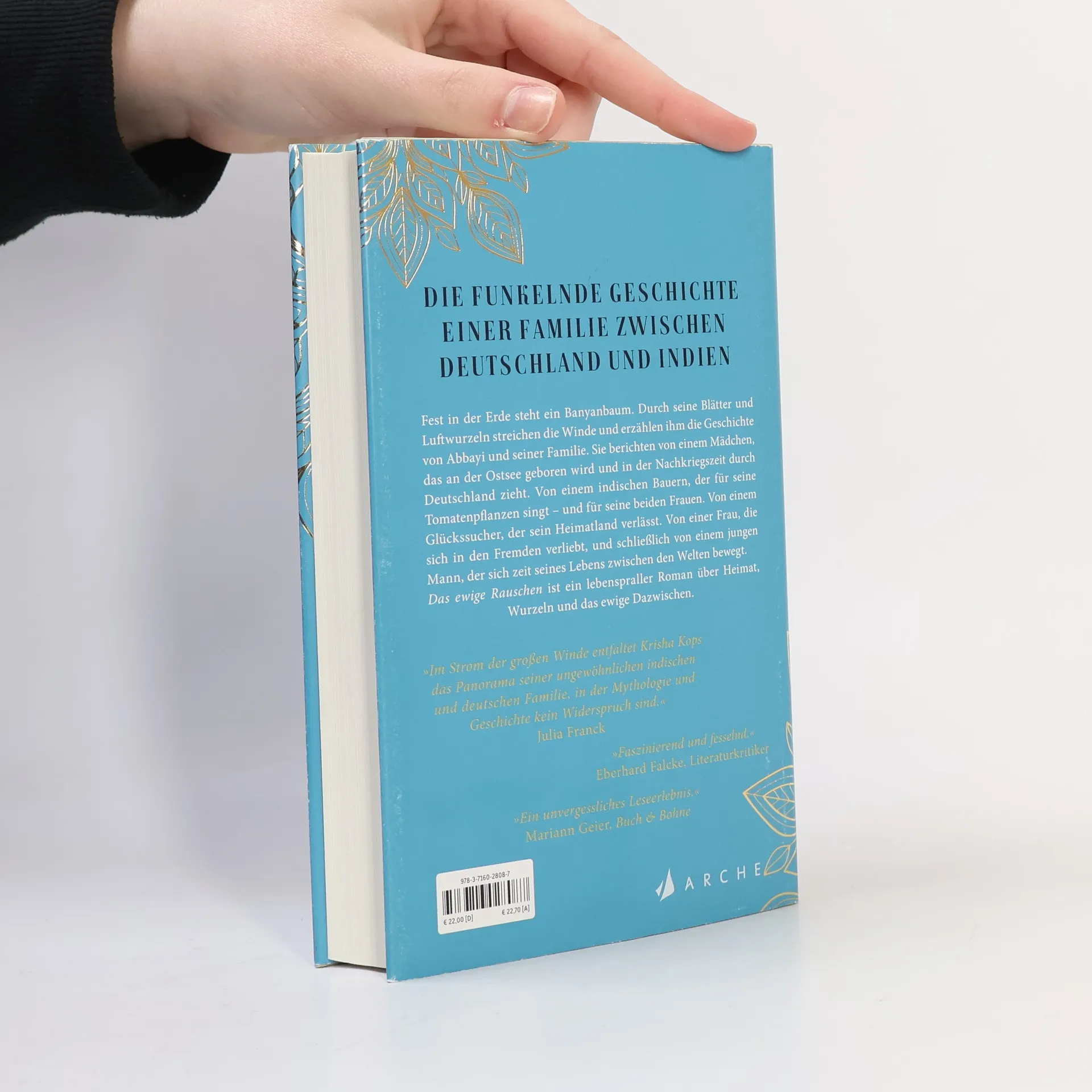 Eine funkelnde deutsch-indische Familiengeschichte. Fest in der Erde steht ein Banyanbaum. Durch seine Blätter und Luftwurzeln streichen die Winde. Sie erzählen ihm die Geschichte von Abbayi und seiner deutsch-indischen Familie. Sie erzählen von einem Mädchen, das an der Ostsee geboren wird und während der Nachkriegszeit mit seiner Familie durch Deutschland zieht. Von einem indischen Bauern, der für seine Tomatenpflanzen singt und für seine beiden Frauen. Von einem Glückssucher, dem die Welt zu klein für seine Ideen ist und der sein Heimatland verlässt. Von einer Frau, die sich in den Fremden verliebt, und schließlich von einem jungen Mann, der sich zeit seines Lebens zwischen den Welten bewegen wird. ›Das ewige Rauschen‹ ist ein großer wie lebenspraller Roman über die Fragen, wer wir sind, wo wir Wurzeln schlagen – und was wir dafür brauchen.