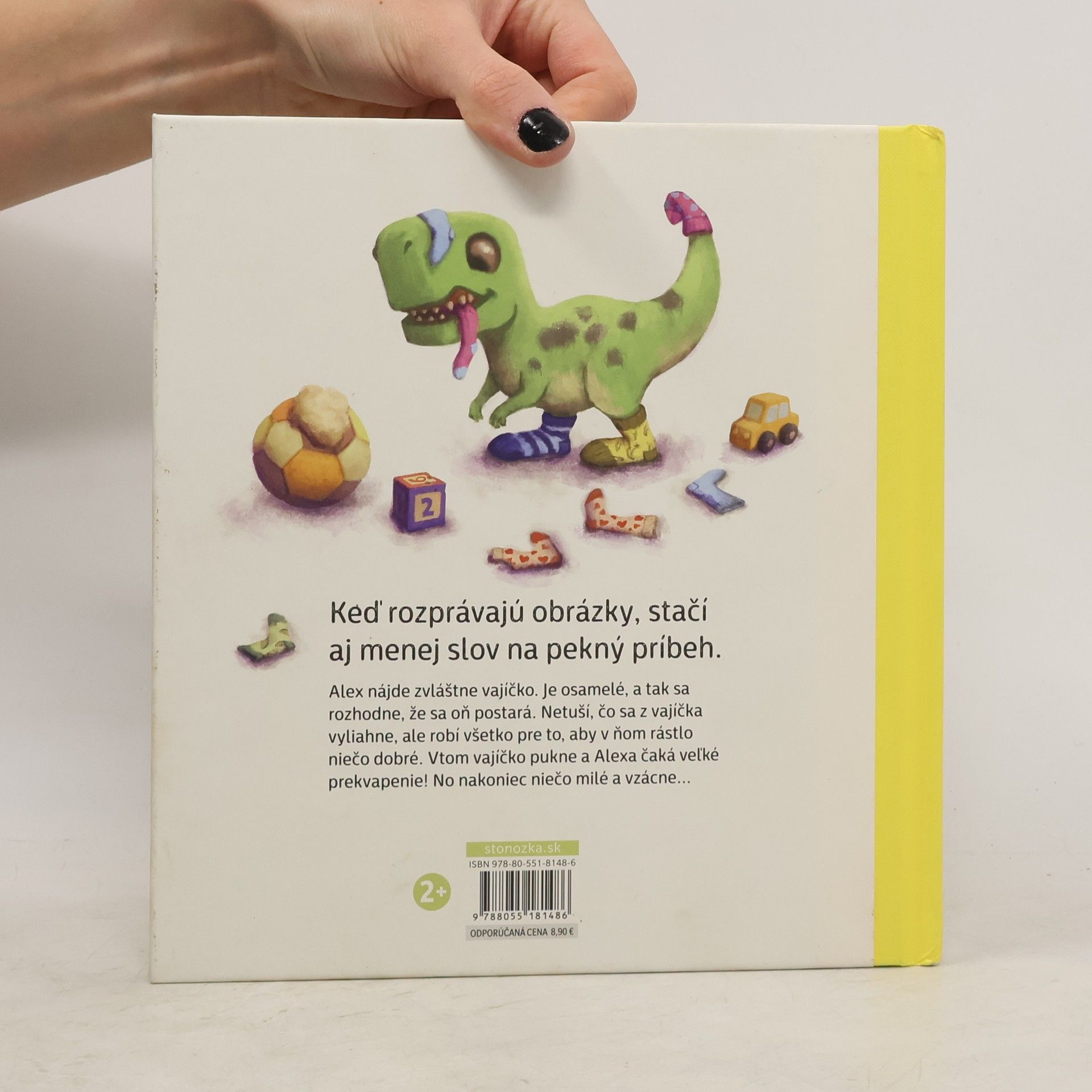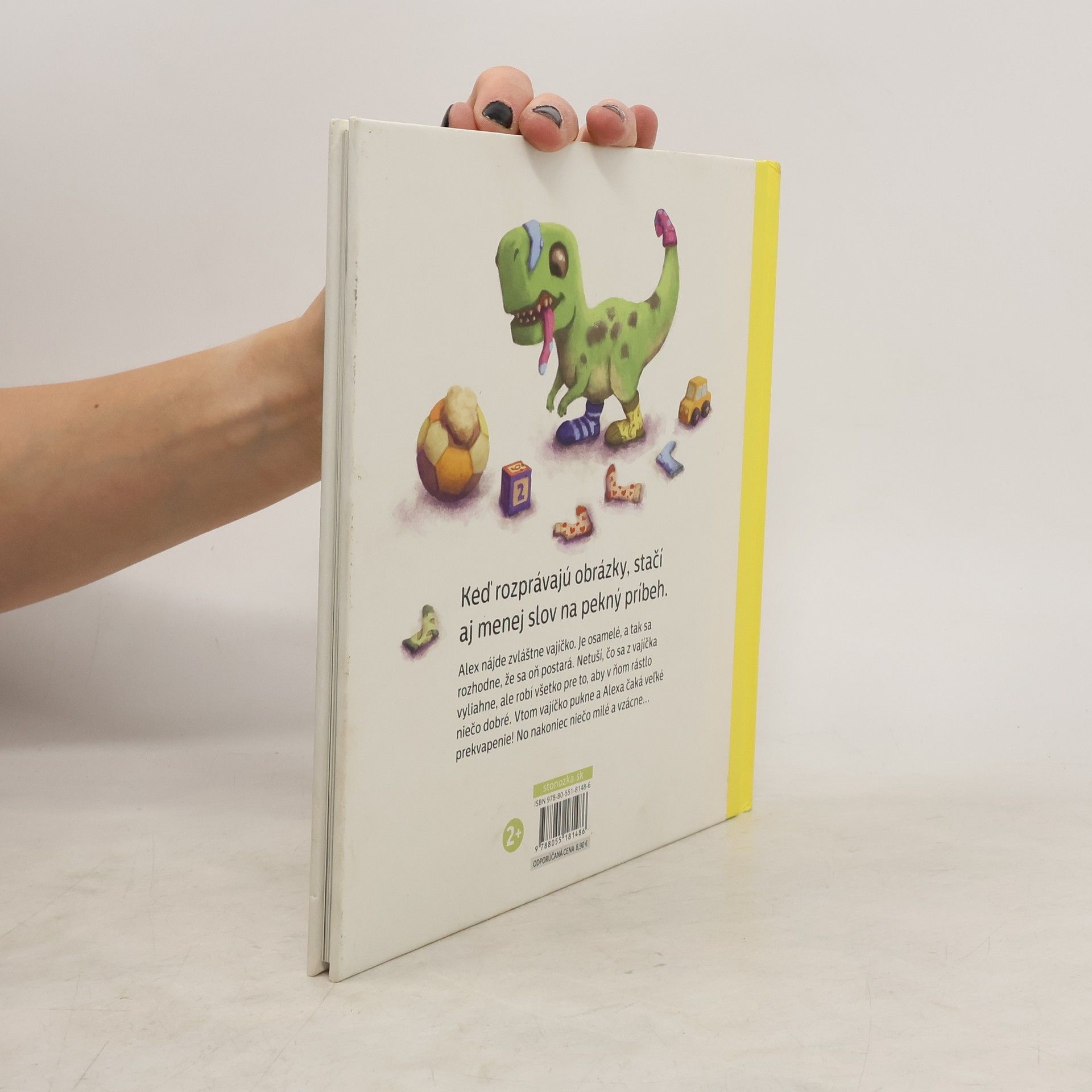 Keď rozprávajú obrázky, stačí aj menej slov na pekný príbeh. Jedného dňa nájde Alex na trávniku pred domom, kde býva, zvláštne vajíčko. Je ťažké, hladké a krásne sa leskne. Zdá sa, že osamelé, preto sa chlapček rozhodne, že sa oň postará. Pritúli ho k sebe v postieľke, číta mu z knižky aj umýva. Netuší, čo sa z vajíčka vyliahne, ale robí všetko pre to, aby v ňom rástlo niečo dobré. Vtom vajíčko pukne a Alexa čaká veľké prekvapenie! No nakoniec niečo milé a vzácne... Talentovaná autorka a zároveň ilustrátorka knižky patrí medzi generáciu mladých slovenských výtvarníkov, ktorých tvorba bola prezentovaná aj v rámci BIB Bratislava 2021. Po debute Myška Miška a Ela a ilustrovaní knihy Dobrodružstvo na Ostrove korytnačiek, vytvorila nový vlastný projekt. Pôvabná obrázková knižka veľmi citlivo rozpráva príbeh rodiaceho sa priateľstva medzi chlapcom a dinosaurom. Sú v nej skryté viaceré posolstvá, ktoré vysiela malému čitateľovi. Okrem prvotného prekvapenia, keď sa z vajíčka vyliahne malý dinosaurus, čakajú na rovnako malého chlapca ďalšie. Dinosaurus je nezbedný a Alex ho musí vychovávať, ocitá sa v podobných situáciách, aké riešia dospelí. Napriek starostiam sa nevzdáva sa a má čoraz radšej svojho dinosaura. V závere príbehu sa situácia otočí. Dinosaurus je veľký nielen vzrastom, ale aj na to, aby ochránil svojho malého priateľa. Knižka priam láka na spoločné čítanie a rozhovory dieťaťa s rodičom, podporuje vzájomnú interakciu a rozvíja citovú výchovu. Pre deti od dvoch rokov Publikáciu z verejných zdrojov podporil Fond na podporu umenia.