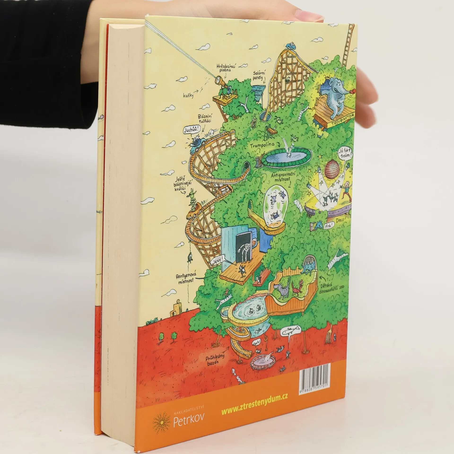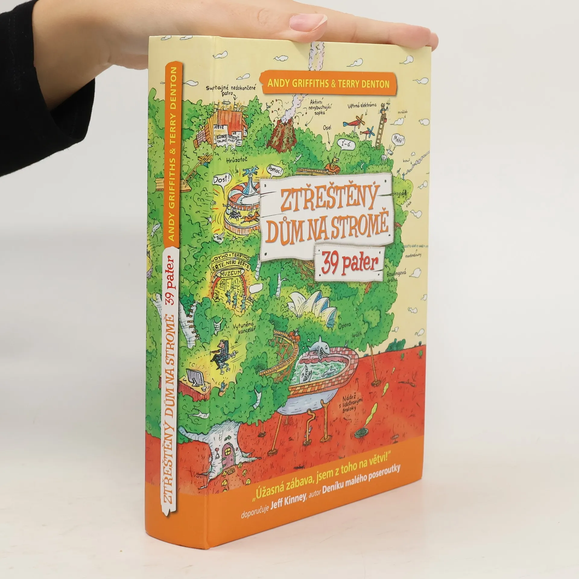 Pojďte se s námi podívat za Andym a Terrym do jejich nově rozšířeného devětatřicetipatrového domu na stromě! Čeká vás 13 zbrusu nových, akčních poschodí. Najdete tu například nejděsivější horskou dráhu na světě, operní dům, buldozerové bitevní pole, diskotéku se světelnou podlahou a obří disko-koulí, arénu s boxovacím slonem, který si říká Troubinátor, špičkově vybavenou kancelář s opakovacími poloautomatickými sešívačkami, laserovými gumami a katapultovacími kancelářskými křesly. Tak na co čekáte? Čtěte!