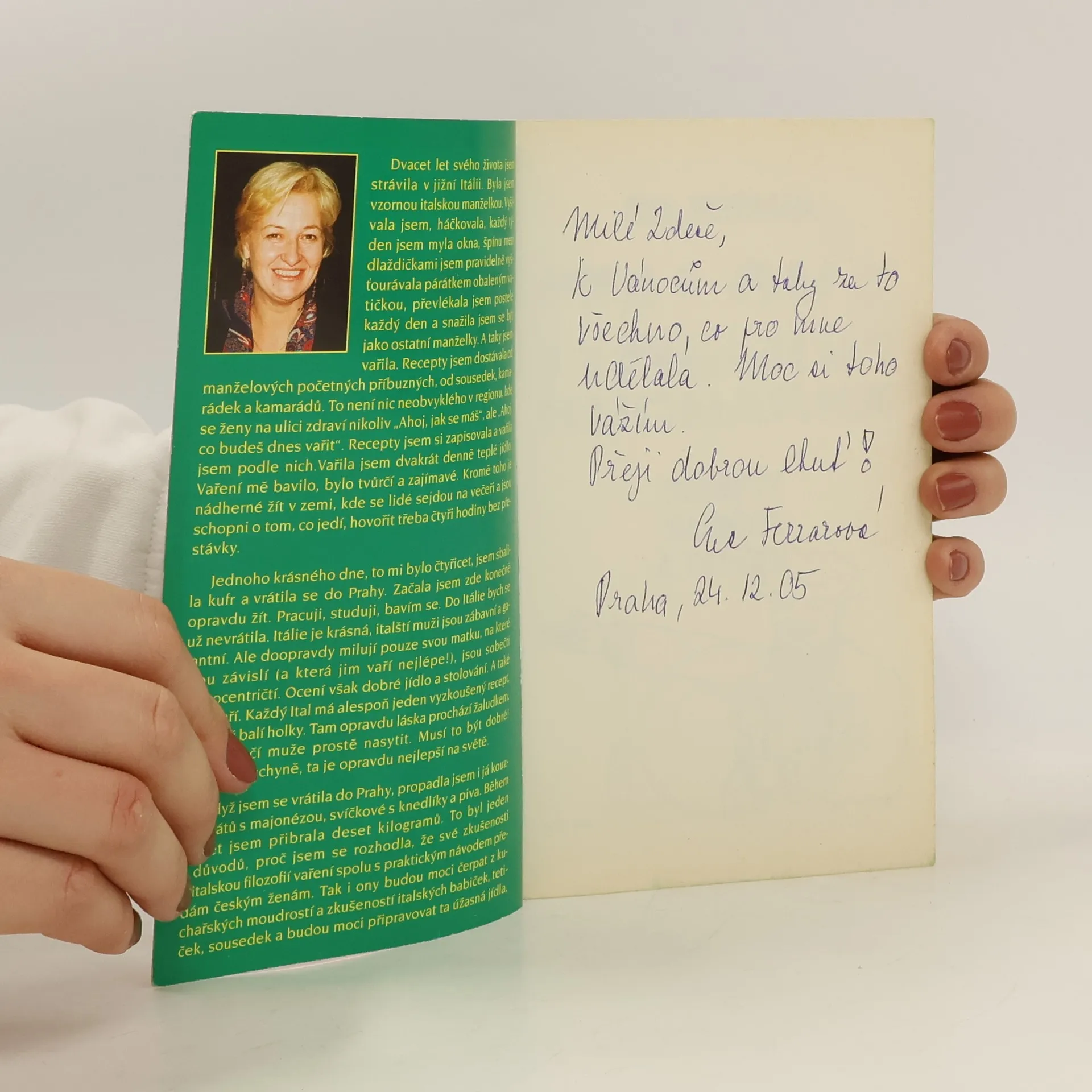 Autorka prožila dvacet let v jižní Itálii a jako Češka se snažila být jako ostatní italské manželky. Velice záhy pochopila, že jídlo je pro Italy pravděpodobně nejdůležitější věcí v životě a rčení, že láska prochází žaludkem, není ani trochu nadnesené – muže nestačí prostě nasytit, ale jídlo musí být skutečně dobré. Tak nasbírala od početných manželových příbuzných, sousedek a kamarádek recepty. Po návratu do Čech začala ta „úžasná jídla, která vyžadují minimum peněz a času, zato hodně fantazie“ zkoušet se svými pražskými kamarádkami. A opět měla úspěch. Zřejmě proto, že její kuchařka není jen nějakou sumarizací receptů, ale postihuje i „filozofii“ italské kuchyně a nechává nahlédnout i do zákulisí italské rodiny.