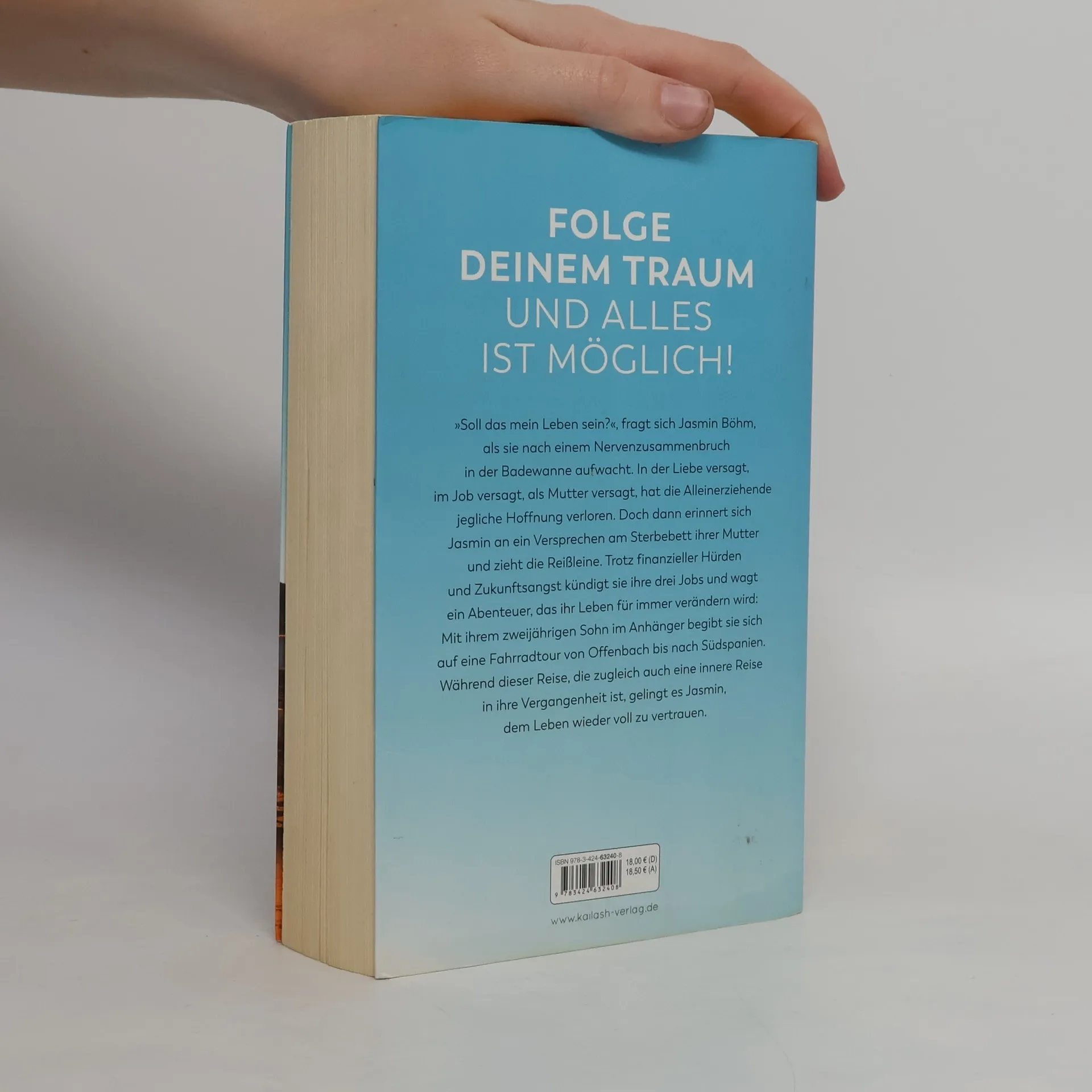 "Vertraue ins Leben und die richtigen Türen öffnen sich." Lars Amend »Soll das mein Leben sein?«, fragt sich Jasmin Böhm als sie nach einem Nervenzusammenbruch in der Badewanne aufwacht. In der Liebe versagt, im Job versagt, als Mutter versagt, hat die Alleinerziehende jegliche Hoffnung verloren. Bis ein fast vergessenes Versprechen am Sterbebett ihrer geliebten Mutter sie dazu bewegt, die Reißleine zu ziehen: Trotz finanzieller Hürden, Zukunftsängste und Gegenwind aus dem Familienkreis nimmt Jasmin all ihren Mut zusammen und kündigt ihre drei Jobs. Sie wagt einen Neuanfang, der ihr Leben für immer verändern wird. Mit ihrem zweijährigen Sohn im Anhänger begibt sie sich auf eine abenteuerliche Fahrradtour von Offenbach bis nach Südspanien. Während dieser Reise ins Glück gelingt es ihr, das kostbare Band zu ihrem Sohn noch enger zu knüpfen und dem Leben wieder voll zu vertrauen. Mit einem Vorwort von Lars Amend.