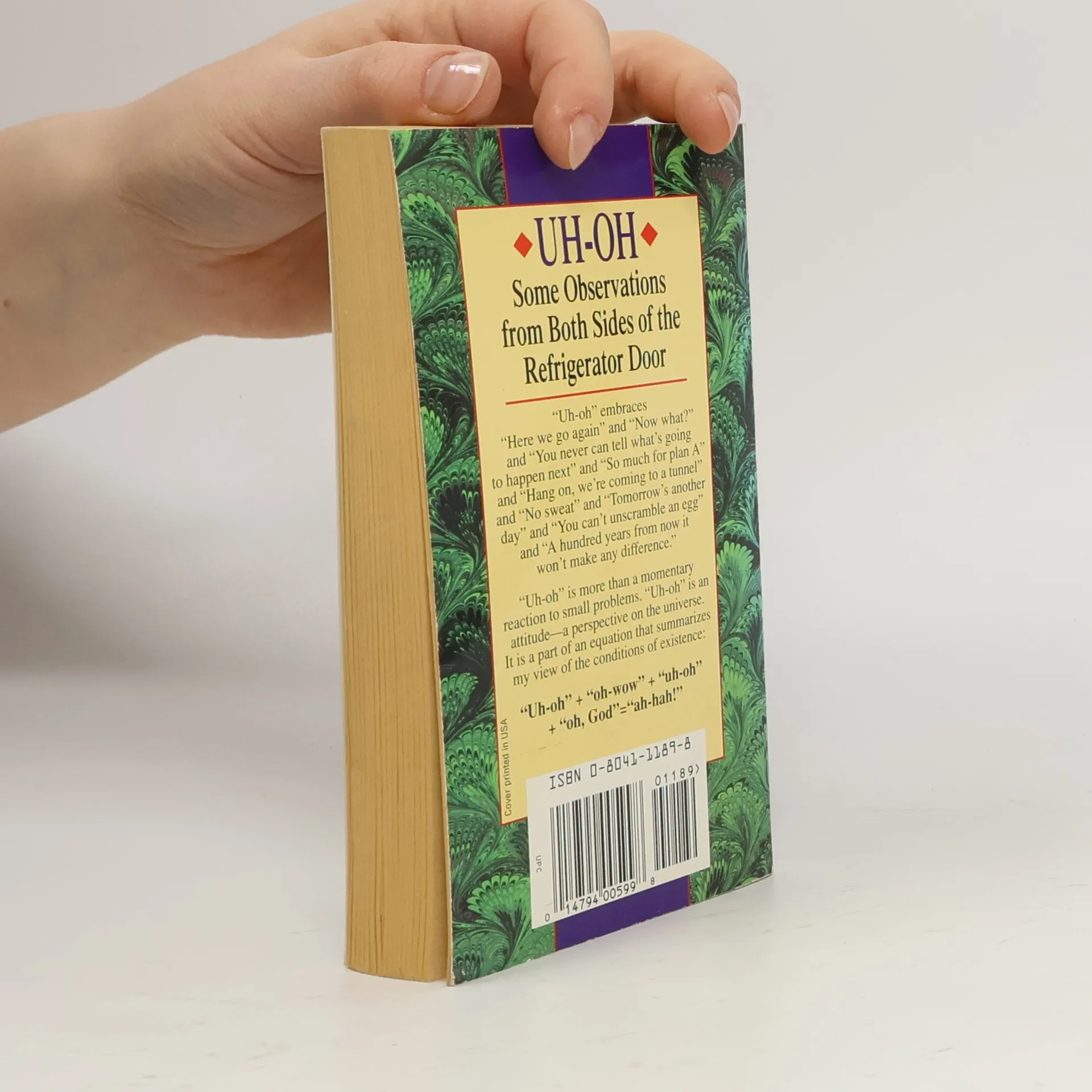 “Uh-oh” embraces “Here we go again” and “Now What?” and “You never can tell what’s going to happen next” and “So much for plan A” and “Hang on, we’re coming to a tunnel” and “No sweat” and “Tomorrow’s another day” and “You can’t unscramble an egg” and “A hundred years from now it won’t make any difference.” “Uh-oh” is more than a momentary reaction to small problems. “Uh-oh” is an attitude—a perspective on the universe. It is a power of an equation that summarizes my view of the conditions of existence: “Uh-huh” + “oh-wow” + “uh-oh” + “oh, God” = “ah-hah!”