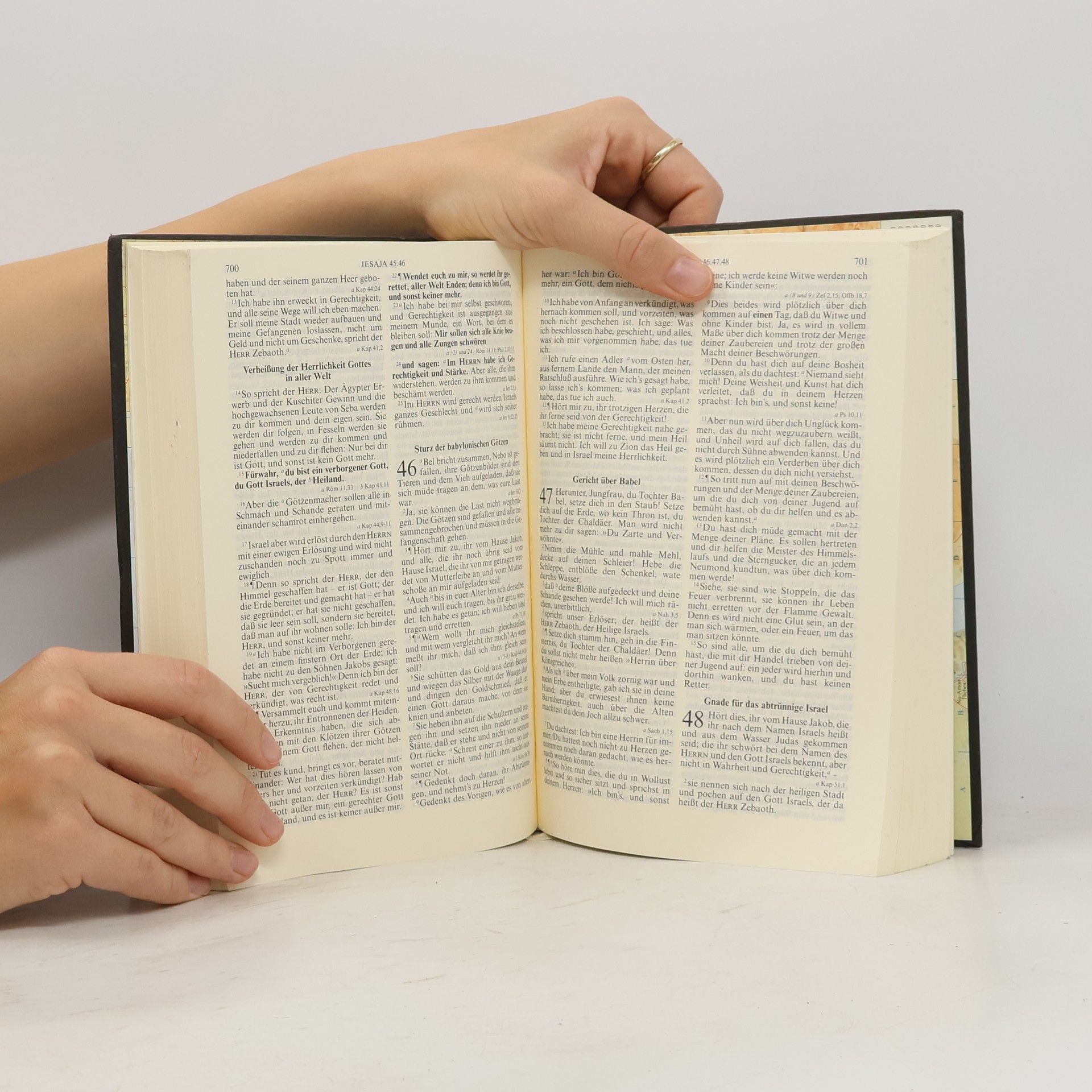 Die Standardausgabe der Lutherbibel in alter Rechtschreibung ohne Apokryphen. Zweispaltig, versweise gesetzt, fett gedruckte Kernstellen, Verweisstellen zwischen den Versen. Mit ausführlichem Anhang und mehrfarbigen Landkarten.