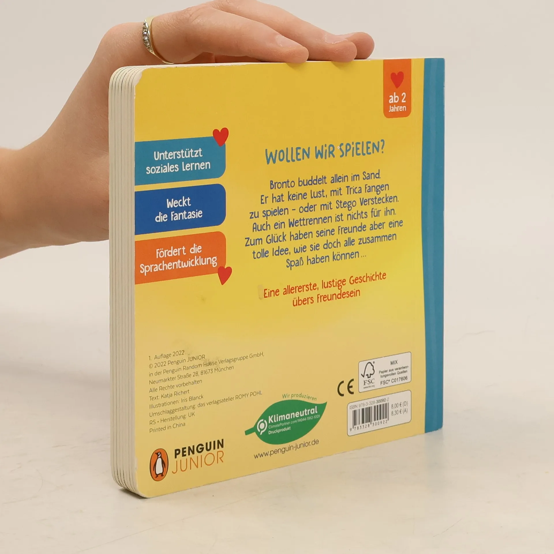 Kunterbunt glänzende, allererste Pappbilderbuch-Abenteuer mit lustigen Fantasie-Babytieren Bronto buddelt allein im Sand. Er hat keine Lust mit Trica Fangen spielen – oder mit Stego Verstecken. Auch ein Wettrennen ist nichts für ihn. Zum Glück haben seine Freunde aber eine tolle Idee, wie sie doch alle zusammen Spaß haben können: Sie bauen gemeinsam die tollste Sandburg der Welt! Eine allererste, lustige Geschichte übers Freundesein, ausgestattet mit bunter Glanzfolie auf dem Cover und allen Doppelseiten. Wunderbar geeignet zum Anschauen und Vorlesen für alle Kinder ab 2 Jahren. - Unterstützt soziales Lernen - Weckt die Fantasie - Fördert die Sprachentwicklung Weitere Titel in dieser Reihe: Katja Richert/ Iris Blanck: Kleiner Drache, nicht streiten! Katja Richert/ Iris Blanck: Kleines Einhorn, gute Nacht! Katja Richert/ Iris Blanck: Kleines Eulenkind, sei mutig! Ausstattung: Mit fbg. Illustrationen und Folienprägung