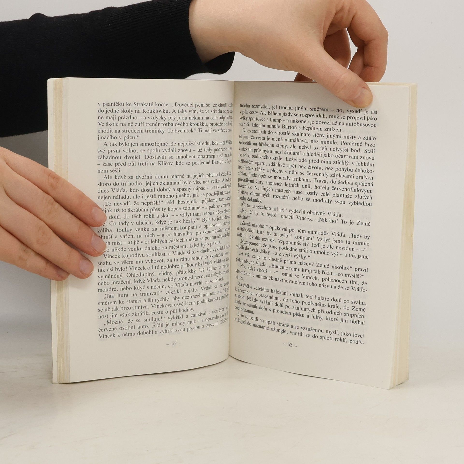 Klukovský román ze současnosti, jehož autorem je známý spisovatel knih pro mládež. Příběh několika klukovských part, odehrávající se na ulicích velkoměsta i v odlehlém kraji za městem, přezvaném několika chlapci na Zemi nikoho. Tento kraj, geologicky velmi zajímavý, halí v sobě četná tajemství, která jedna parta chlapců před druhou ukrývá. Teprve propadající se zem na jednom z míst tohoto kraje, která ohrozí na životech dva chlapce, spojí všechny chlapce v úsilí o záchranu a pomůže překlenout nepřátelství. Jedna ze zdařilých "foglarovek"....