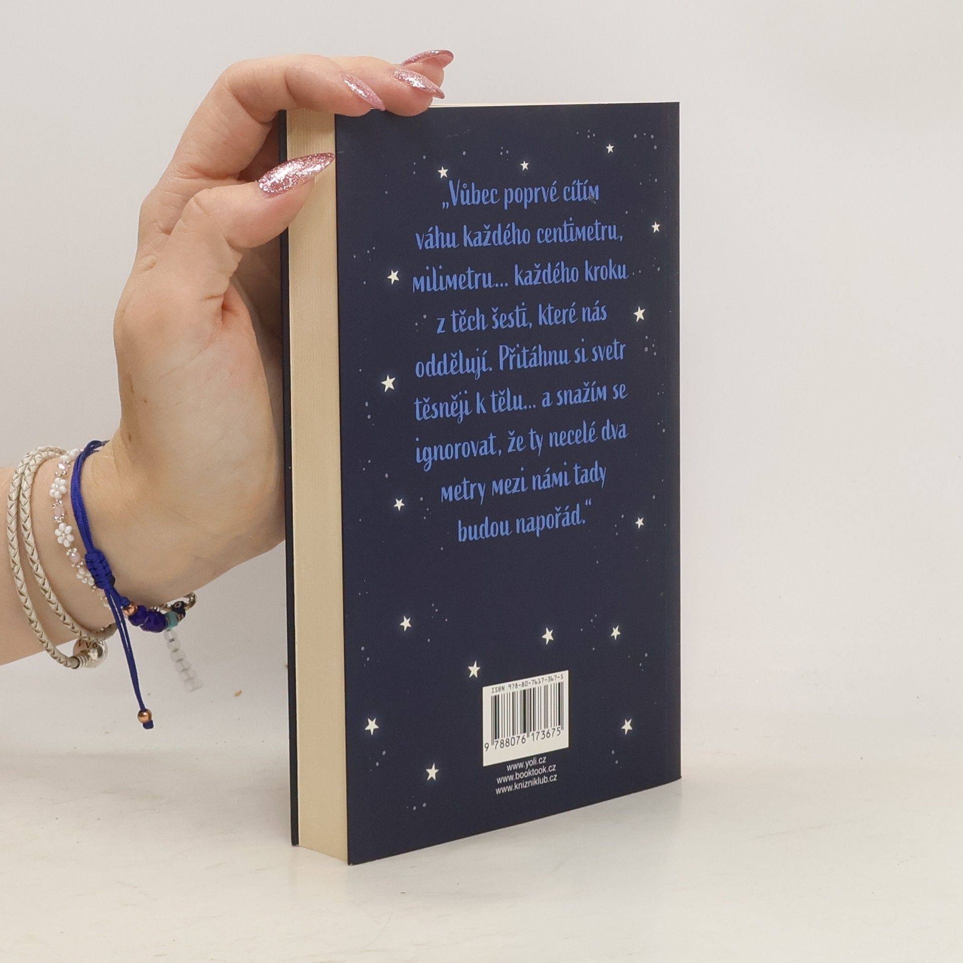 Stella Grantová má cystickou fibrózu a její kontakt s okolním světem je minimální. Aby neohrozila své šance na transplantaci, musí se chránit před kýmkoli a čímkoli, co by mohlo být nositelem infekce. Šest stop. To je vzdálenost, kterou musí dodržovat. Šest stop – bez výjimky. Willa Newmana léčba vůbec nezajímá. Každým dnem mu bude osmnáct a pak – sbohem, nemocnice. Vykašle se na léky a konečně si bude užívat života. Will je přesně tím, od koho by se Stella měla držet dál. Pokud se k němu přiblíží a nakazí se, mohla by přijít o své místo na seznamu čekatelů. Aby se tak nestalo, musí si držet odstup. Čím víc se ale s Willem sbližují, tím víc jim předepsaných šest stop začíná připadat jako trest. Jaké by to asi bylo, kdyby si pro sebe mohli ukrást trochu té svobody, kterou jim vzala jejich nemoc? Co by se stalo, kdyby zkrátili vzdálenost na pět stop?