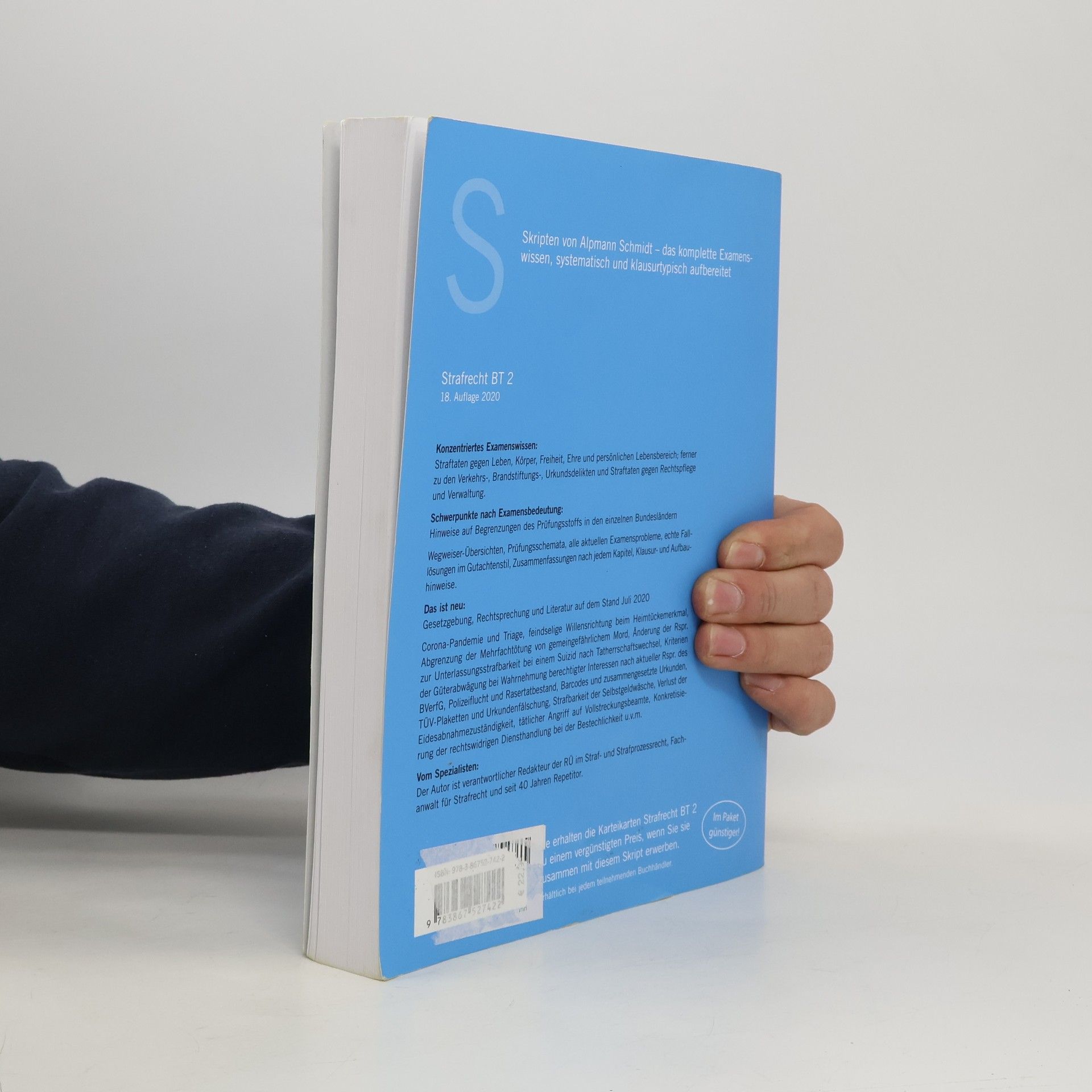 Vorteile- Noch stärkere Konzentration auf das Examenswissen- Optimale Verknüpfung von Strukturwissen und Falllösung- Übersichtliche SchemataZur ReiheAlpmann Skripten - Das komplette ExamenswissenZum WerkDas Werk behandelt folgende Delikte:- Straftaten gegen Leben, Körper, Freiheit, Ehre und persönlichen Lebensbereich- Verkehrs-, Brandstiftungs-, Urkundsdelikte- Straftaten gegen Rechtspflege und VerwaltungEs bietet Wegweiser-Übersichten, Prüfungsschemata, alle aktuellen Examensprobleme, echte Falllösungen im Gutachtenstil, Zusammenfassungen nach jedem Kapitel, Klausur- und Aufbauhinweise.ZielgruppeStudenten ab dem mittleren Semester sowie Referendare zur gezielten Wiederholung des materiellen Rechts