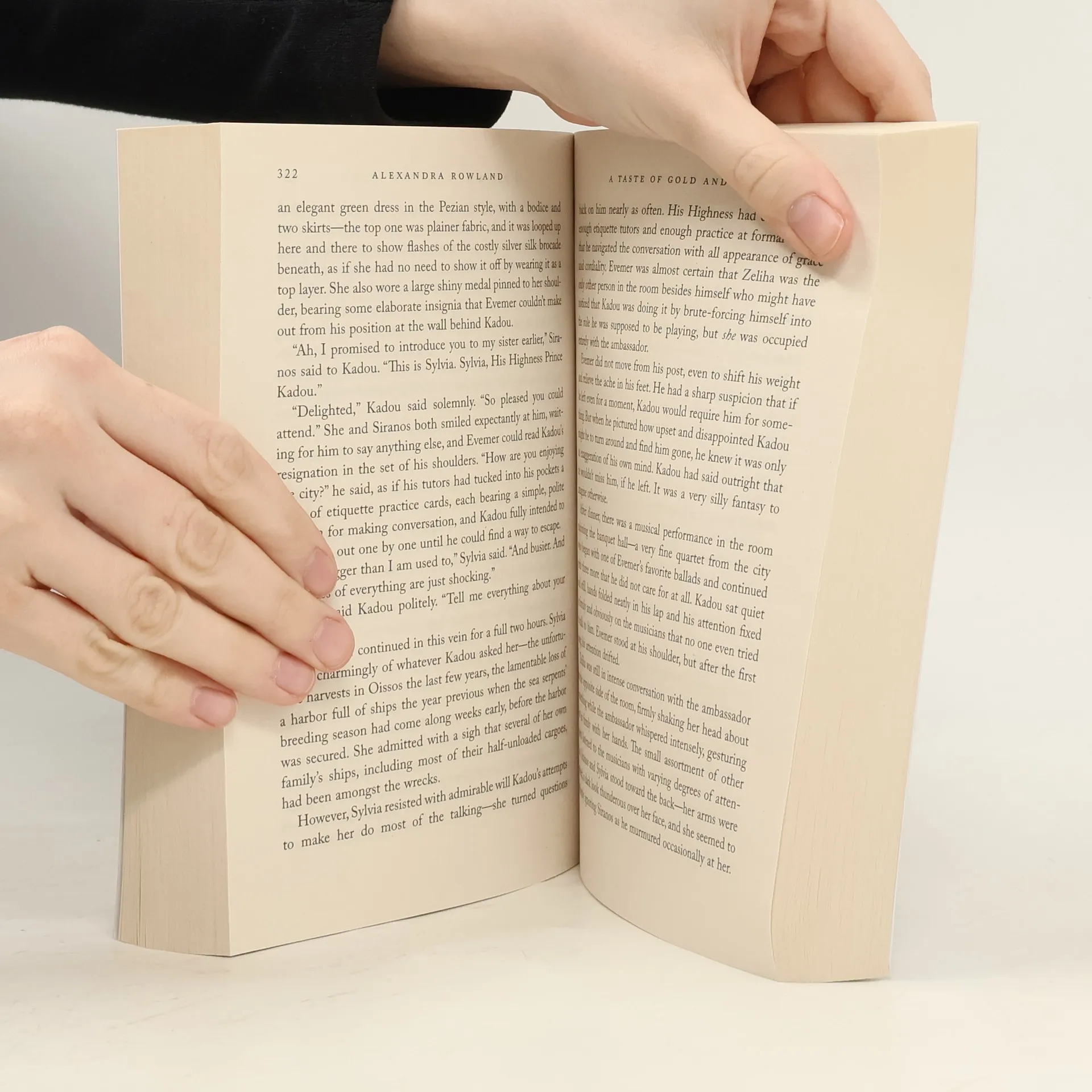 A Taste of Gold and Iron by Alexandra Rowland is a breathtaking fantasy romance set in an Ottoman-inspired world of courtly conspiracies and chivalric fealty, as Prince Kadou and his bodyguard Evemer investigate a counterfeiting operation that could topple their empire.