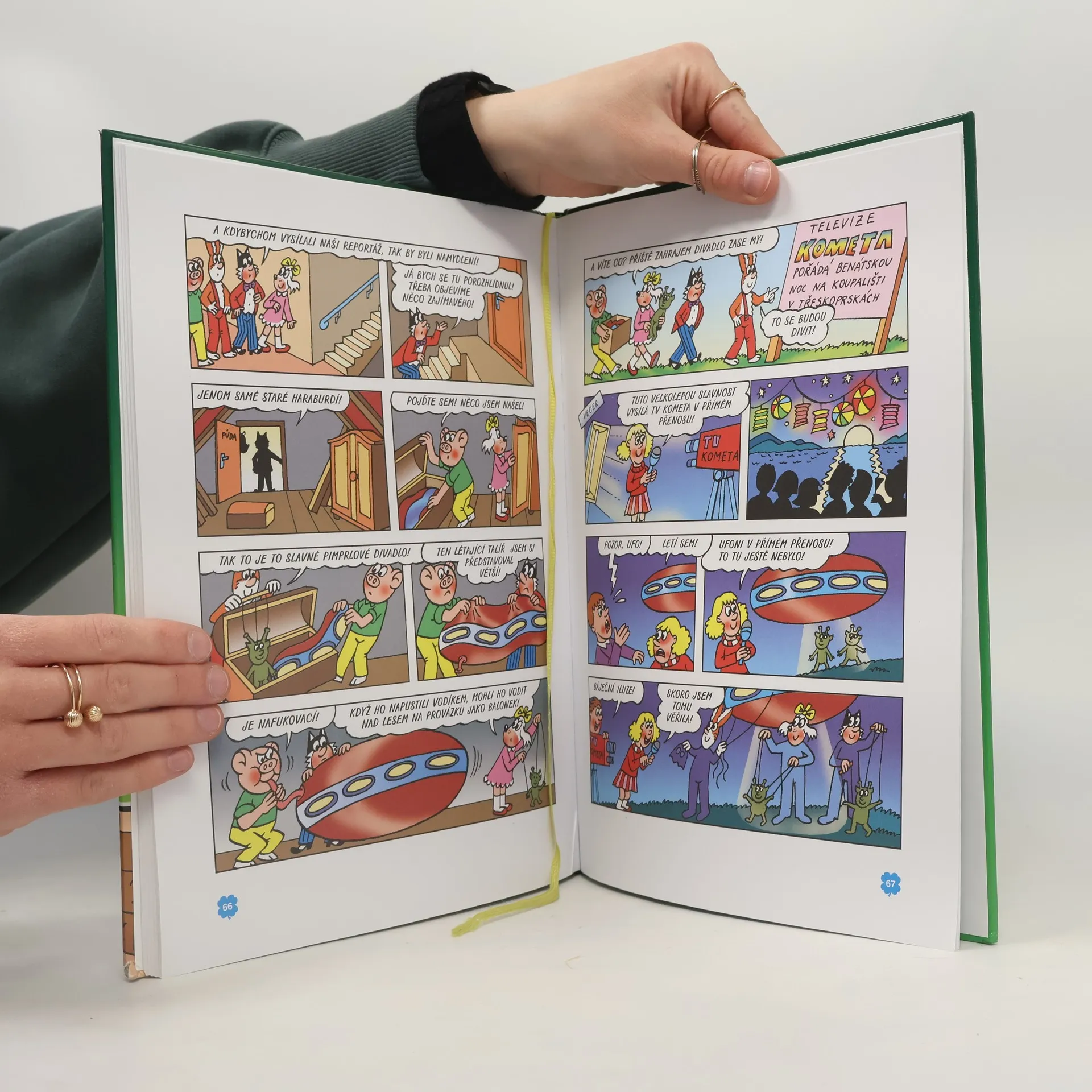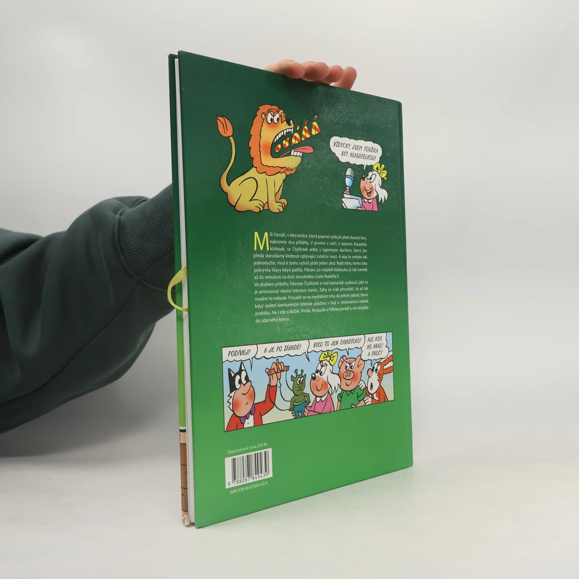 Tato komiksová kniha obsahuje dva příběhy. V prvním příběhu s názvem Kouzelný klobouk se Čtyřlístek setká s tajemným duchem. Díky jeho klobouku se pak ocitne v pohádkovém světě, kde zažije jedno velké a napínavé dobrodružství. V druhém příběhu s názvem Televize Čtyřlístek si pak naši kamarádi zkusí, jaké to je, stát se majiteli vlastní televizní stanice. Bobík, Myšpulín, Pinďa a Fifinka Vám přejí při četbě této knížky spoustu dobré zábavy.