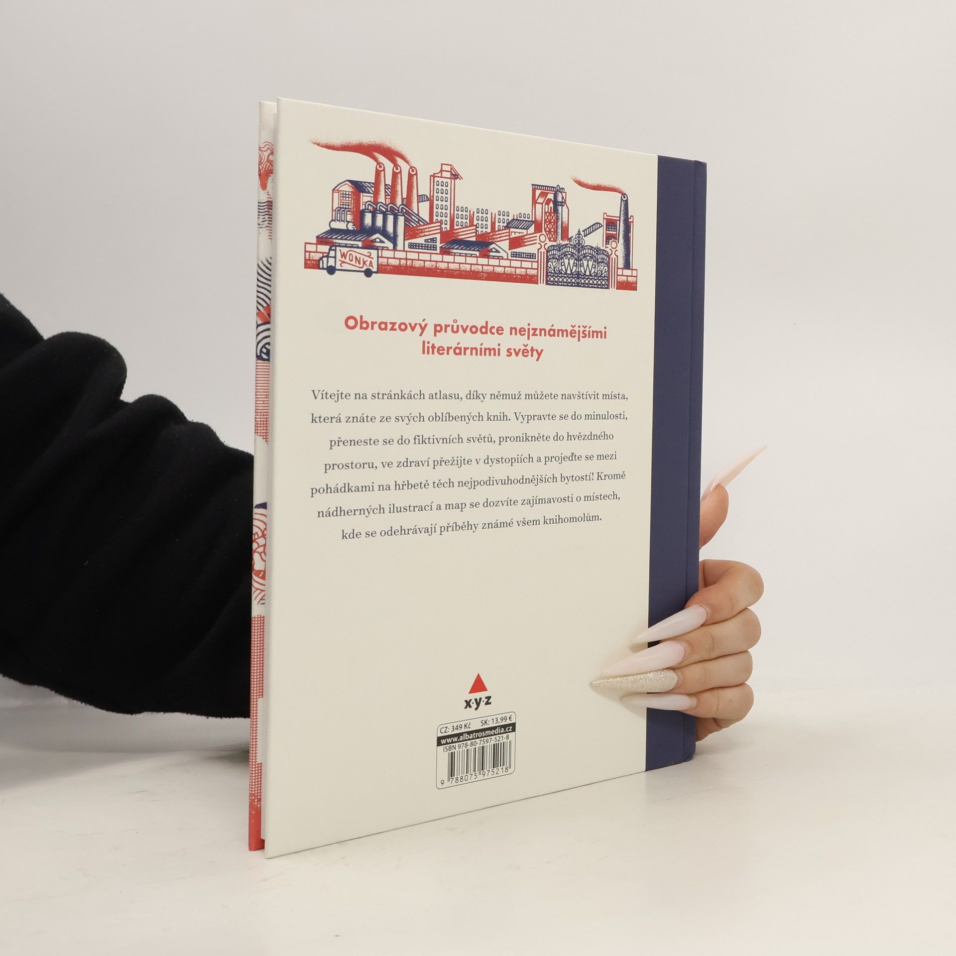 Obrazový průvodce nejznámějšími literárními světy. Vítejte na stránkách atlasu, díky němuž můžete navštívit místa, která znáte ze svých oblíbených knih. Vypravte se do minulosti, přeneste se do fiktivních světů, pronikněte do hvězdného prostoru, ve zdraví přežijte v dystopiích a projeďte se mezi pohádkami na hřbetě těch nejpodivuhodnějších bytostí! Kromě nádherných ilustrací a map se dozvíte zajímavosti o místech, kde se odehrávají příběhy známé všem knihomolům.