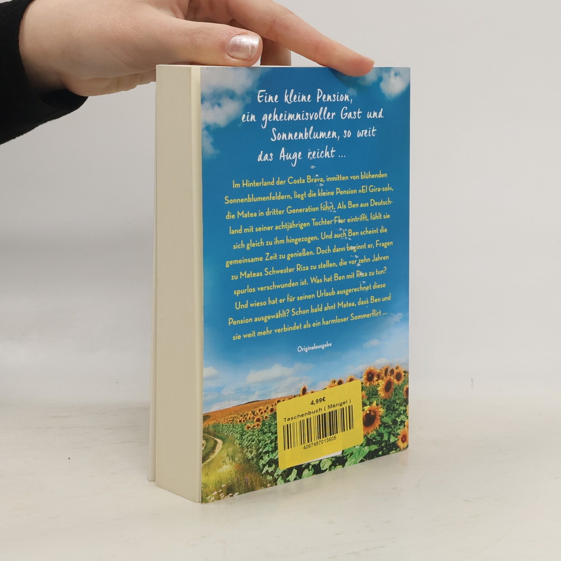 Eine kleine Pension, ein geheimnisvoller Gast und Sonnenblumen, so weit das Auge reicht ... Im Hinterland der Costa Brava, inmitten von blühenden Sonnenblumenfeldern, liegt die kleine Pension »El Gira-sol«, die Matea in dritter Generation führt. Als Ben aus Deutschland mit seiner achtjährigen Tochter Flor eintrifft, fühlt sie sich gleich zu ihm hingezogen. Und auch Ben scheint die gemeinsame Zeit zu genießen. Doch dann beginnt er, Fragen zu Mateas Schwester Riza zu stellen, die vor zehn Jahren spurlos verschwunden ist. Was hat Ben mit Riza zu tun? Und wieso hat er für seinen Urlaub ausgerechnet diese Pension ausgewählt? Schon bald ahnt Matea, dass Ben und sie weit mehr verbindet als ein harmloser Sommerflirt ...