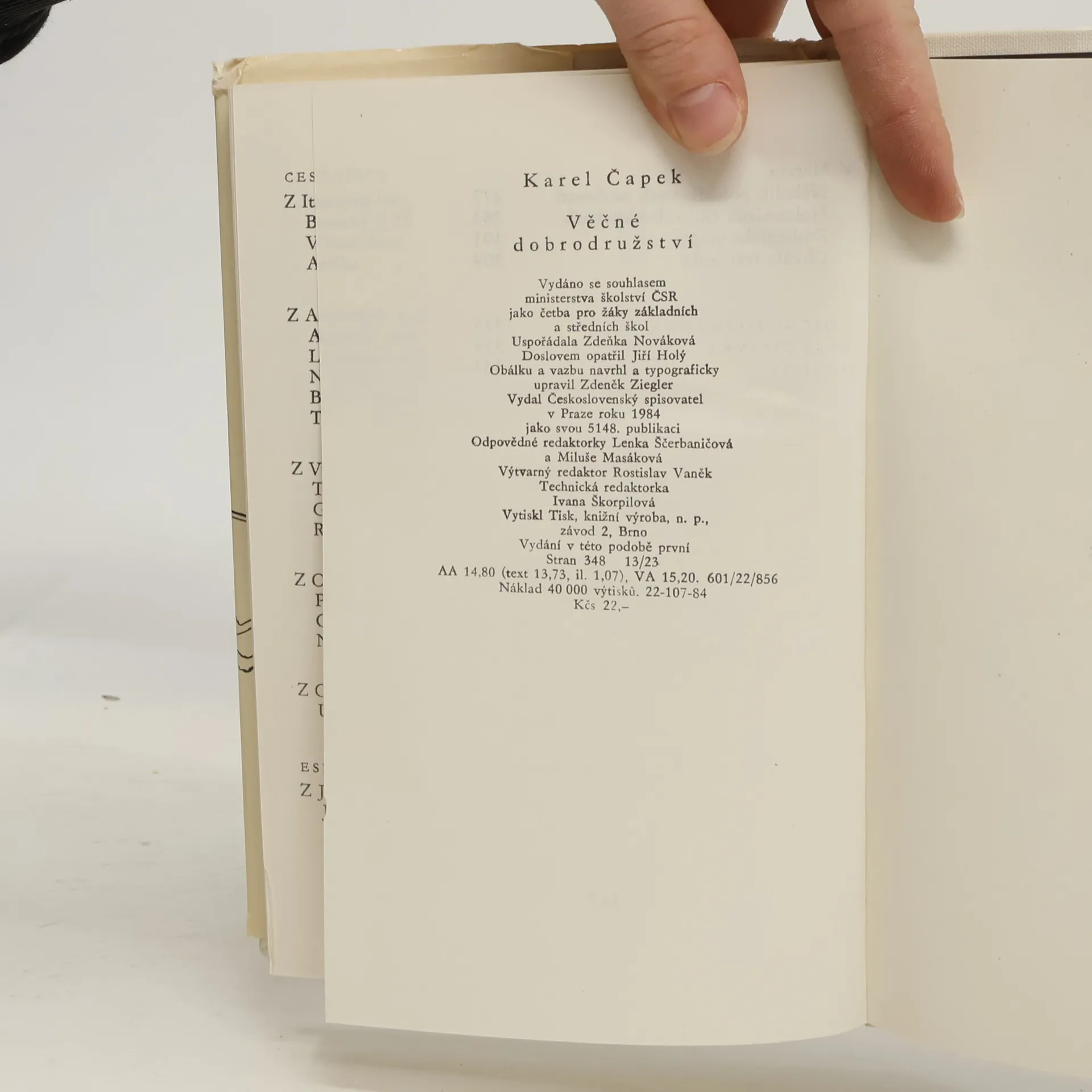 Kniha obsahuje průřez Čapkovou, zejména povídkovou, tvorbou: najdete zde ukázky z různých sbírek, z cestopisů, z knihy "Jak se co dělá" atd.