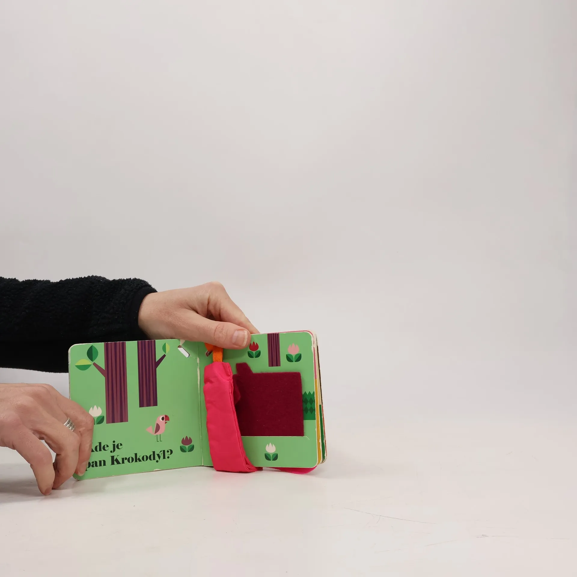 Knížka vhodná pro nejmenší děti pro jejich první seznamovaní se světem. Rozvíjí jejich zrak, hmat a motorické schopnosti. Děti budou hledat schovaná africká zvířátka, měkká plstěná okénka umožní dětem zlepšovat poznávání světa hmatem. Na konci knihy na děti vykoukne překvapení. V malém kulatém zrcátku uvidí… Kohopak? No přece sebe! Díky malým rozměrům a připevnění ke kočárku je tato knížečka skvělým parťákem na cesty.