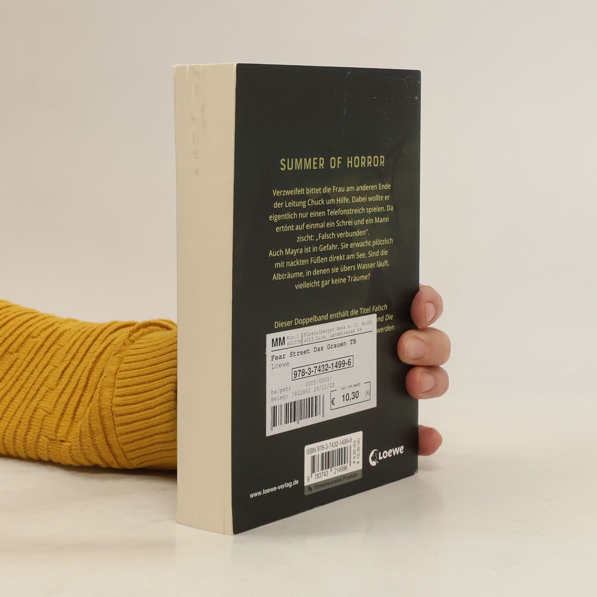 Summer of Horror Verzweifelt bittet die Frau am anderen Ende der Leitung Chuck um Hilfe. Dabei wollte er eigentlich nur einen Telefonstreich spielen. Da ertönt auf einmal ein Schrei und ein Mann zischt: „Falsch verbunden“. Auch Mayra ist in Gefahr. Sie erwacht plötzlich mit nackten Füßen direkt am See. Sind die Albträume, in denen sie übers Wasser läuft, vielleicht gar keine Träume? Dieser Doppelband enthält die Titel Falsch verbunden und Die Schlafwandlerin Mit den Horror - und Thriller-Büchern aus der Fear Street schuf Bestsellerautor R.L. Stine eine Reihe, die inzwischen zu den Klassikern der Horrorliteratur für Jugendliche zählt. Seit über 20 Jahren gibt es seine Geschichten schon auf Deutsch und seitdem begeistern sie alle Fans von Gruselgeschichten ab 12 Jahren.