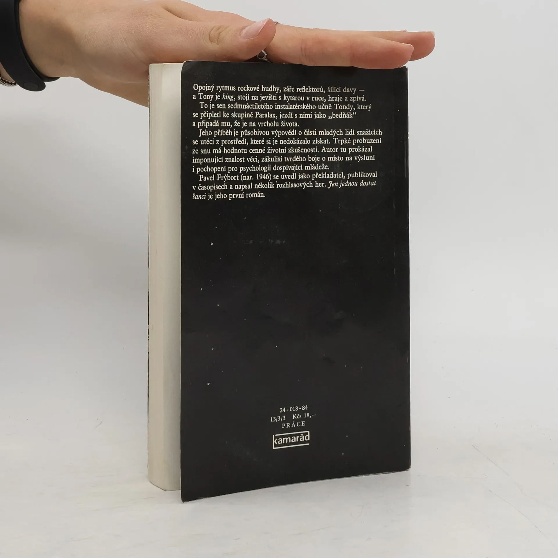 Jen jednou dostat šanci - 1984, prvotina, jde o příběh fascinace skupinou Katapult. "Jen jednou dostat šanci u dobrý kapely, to byste, nevzdělanci, to byste viděli..." To jsou slova písně skupiny Katapult, která fascinují hlavního hrdinu této knihy. Tony je snílek a rebel. Obětavě pomáhá při stěhování aparatur na koncertech své zbožňované kapely. Naivně věří, že se jednou stane kytaristou Katapultu. Neuvědomuje si však, že ještě nikdy nevyzkoušel své muzikantské schopnosti na veřejnosti. Bezelstný dospívající idealista Tony chce vidět svět krásný, plný lásky a rockové muziky. Tu vnímá jako protest proti životnímu stylu rodičů i oficíální kultuře 80. let. Svět kolem něj je však stále střízlivě ošklivý a nepřátelský. Naráží v něm na vlastní trapnosti a neporozumění ostatních. Tento rockový příběh je originální a napínavý, střídají se v něm ironie a humor s vážnými psychologickými momenty a dramatickými zvraty
