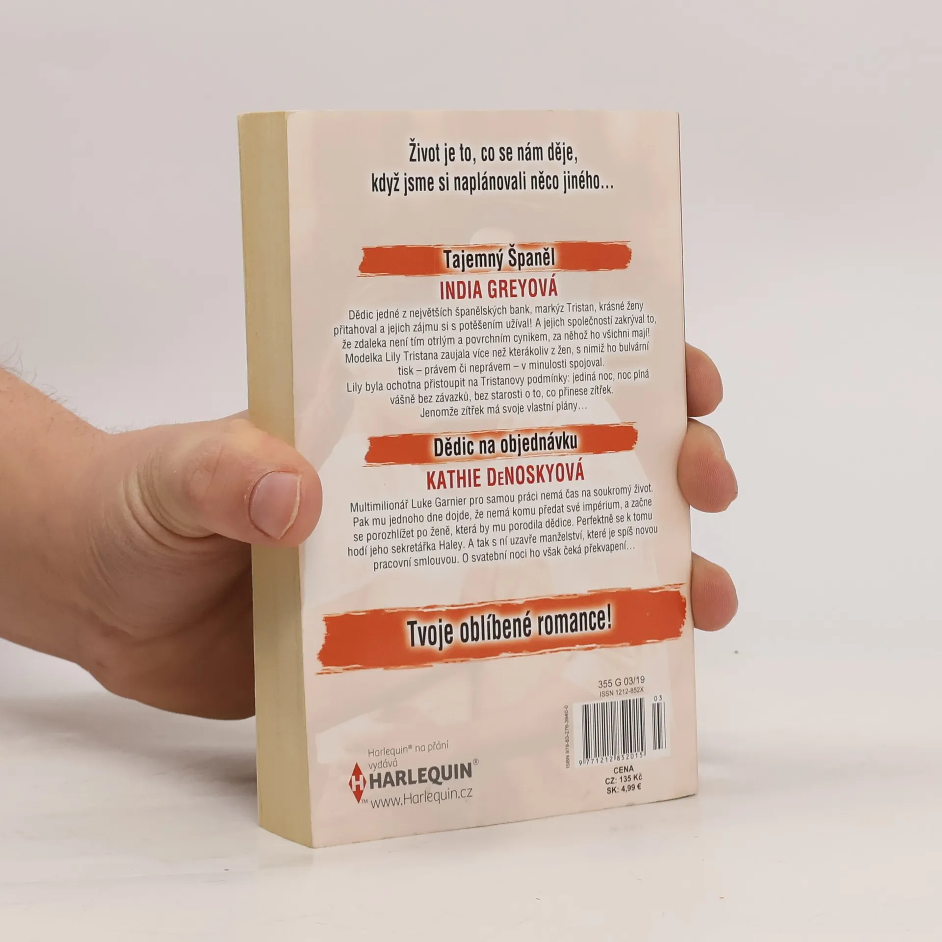 Tajemný Španel - Dědic jedné největších španělských bank, markýz Tristan, krásné ženy přitahoval a jejich zájmu si s potěšením užíval! A jejich společností zakrýval to, že zdaleka není tím otrlým a povrchním cynikem, za něhož ho všichni mají! Modelka Lily Tristana zaujala více než kterákoliv z žen, s nimiž ho bulvární tisk - právem či neprávem - v minulosti spojoval. Lily byla ochotna přistoupit na Tristanovy podmínky: jediná noc, noc plná vášně bez závazků, bez starosti o to, co přinese zítřek. Jenomže zítřek má svoje vlastní plány... Dědic na objednávku - Multimilionář Luke Garnier pro samou práci nemá čas na soukromý život. Pak mu jednoho dne dojde, že nemá komu předat své impérium a začne se porozhlížet po ženě, která by mu porodila dědice. Perfektně se k tomu hodí jeho sekretářka Haley. A tak s ní uzavře manželství, které je spíš novou pracovní smlouvou. O svatební noci ho však čeká překvapení...