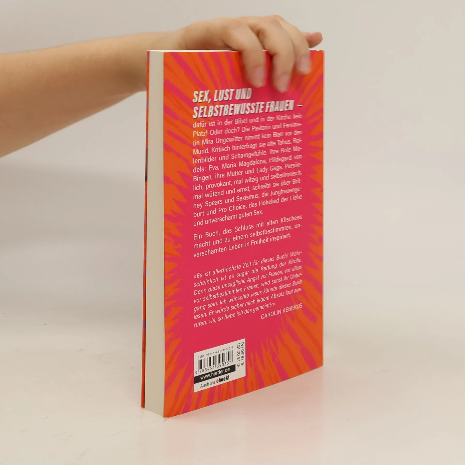Sex, Lust und selbstbewusste Frauen – dafür ist in der Bibel und in der Kirche kein Platz! Oder doch? Die Pastorin und Feministin Mira Ungewitter nimmt kein Blatt vor den Mund. Kritisch hinterfragt sie alte Tabus, Rollenbilder und Schamgefühle. Ihre Role Models: Eva, Maria Magdalena, Hildegard von Bingen, ihre Mutter und Lady Gaga. Persönlich, provokant, mal witzig und selbstironisch, mal wütend und ernst, schreibt sie über Britney Spears und Sexismus, die Jungfrauengeburt und Pro Choice, das Hohelied der Liebe und unverschämt guten Sex. Ein Buch, das Schluss mit alten Klischees macht und zu einem selbstbestimmten, unverschämten Leben in Freiheit inspiriert.