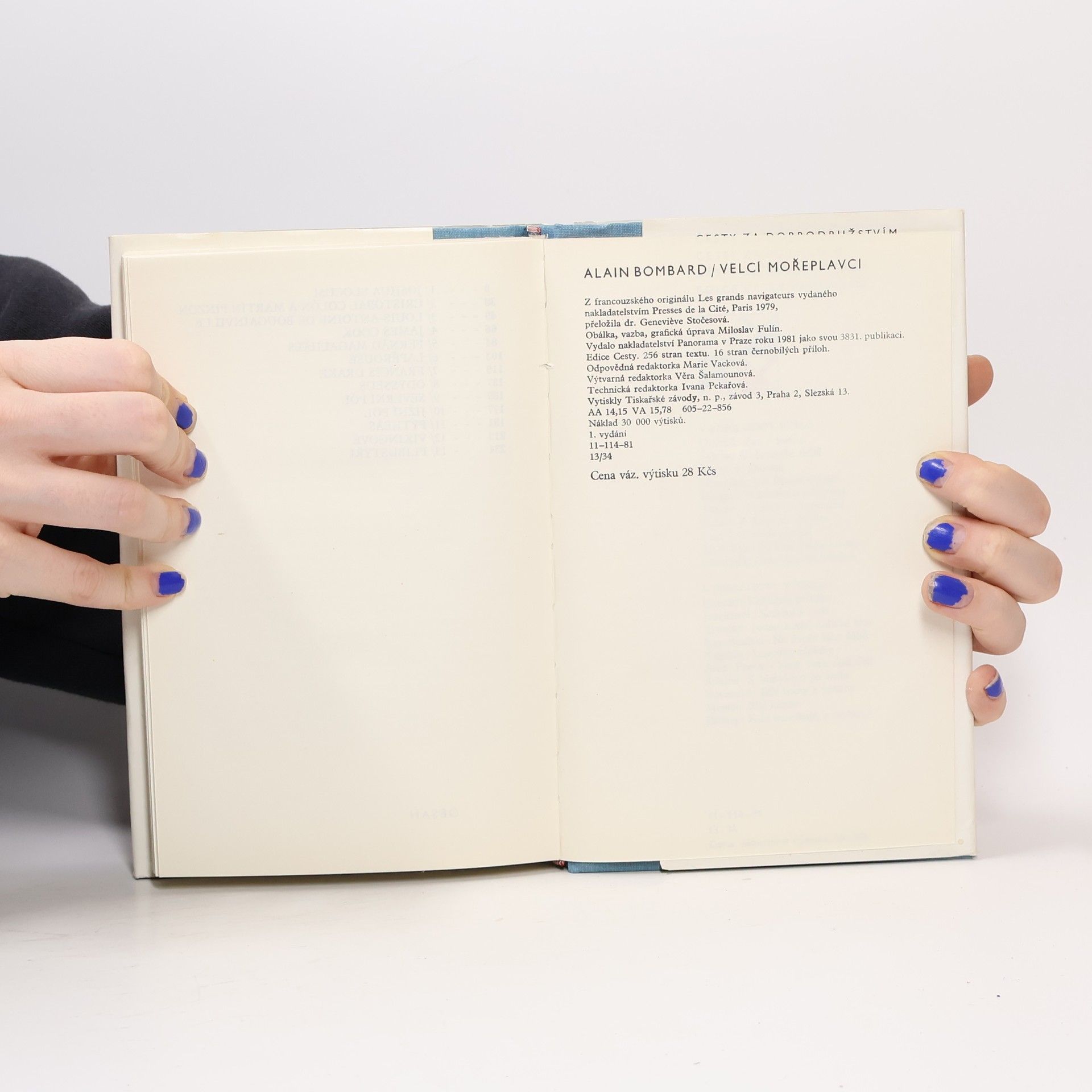 Sbírka historických portrétů velkých mořeplavců (Joshua Slocum, Cristobal Colón / K. Kolumbus, Martin Pinzón, J. Cook, L.-A. de Bougainville, vikingové, Odysseus, Pýthéas, Flibustýři, dobyvatelé Jižního a Severního pólu). Autor prostudoval všechnu dostupnou literaturu o každém mořeplavci,přesto nevznikly jen obvyklé historické studie, kromě nezbytných dat a stručné charakteristiky každé doby, vyprávění navíc obsahuje jeho osobní zkušenost osamělého mořeplavce. Je to moderní verze velkých námořních objevů ve formě portrétů jejich hlavních aktérů, příběhy plné dobrodružství, uskutečněných snů dřímajících v hlavách mladých hrdinů plných odvahy a touhy po neznámém.