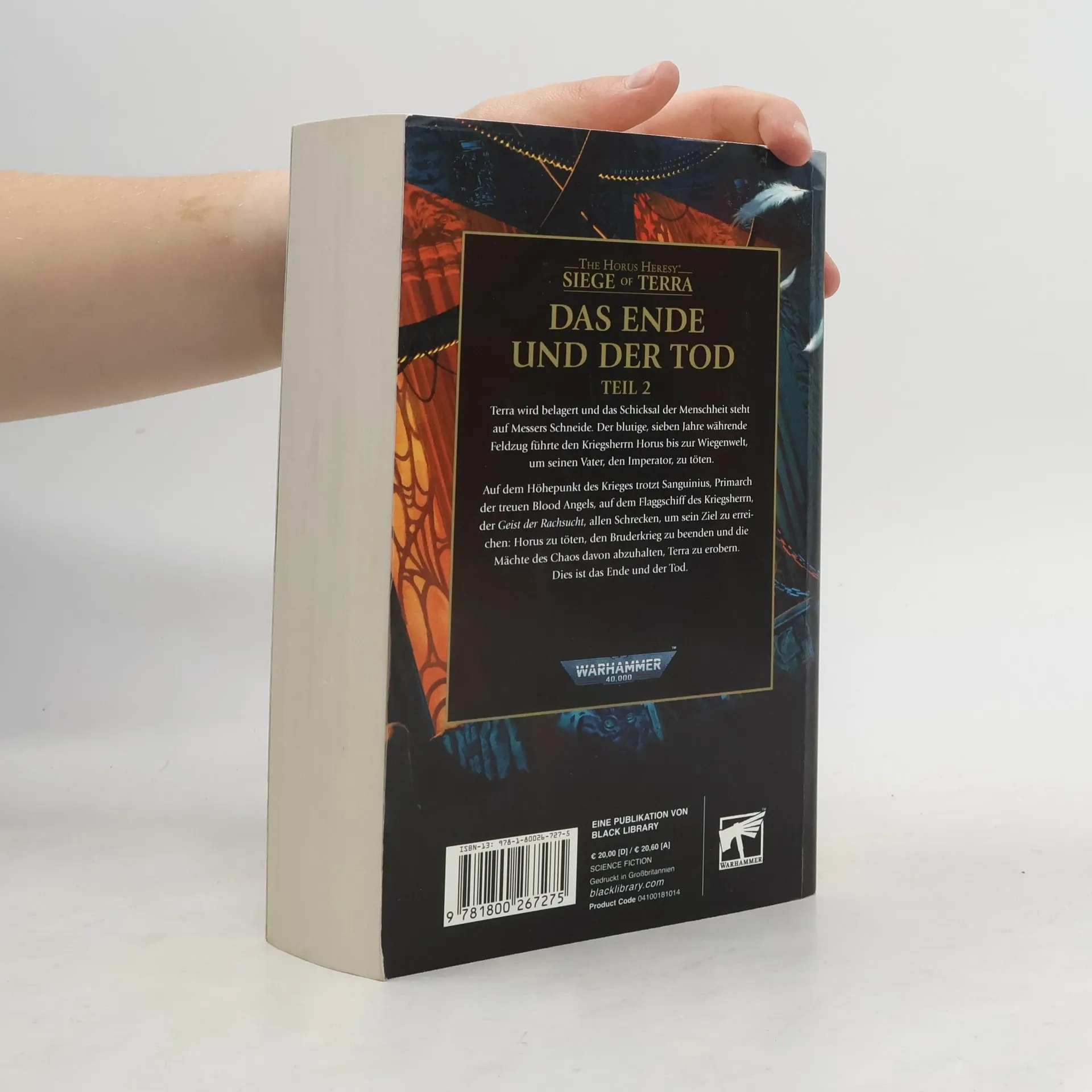 Siege of Terra Band 8, Teil 2 Der zweite Teil des Finales der Belagerung von Terra macht genau dort weiter, wo der erste aufhört. Die kataklysmischen Ereignisse steuern auf eine epische Konfrontation zu, welche die Galaxis bis in ihre Grundfesten erschüttern wird. WARUM DU DIESES BUCH LESEN SOLLTEST Der Endkampf auf dem Flaggschiff des Kriegsherrn wird ernst, den Sanguinius trotzt seinem Schicksal und den Dunklen Göttern in einem Versuch, das Leben seines Bruders zu beenden und damit auch den Krieg. DIE GESCHICHTE Terra wird belagert und das Schicksal der Menschheit steht auf Messers Schneide. Der blutige, sieben Jahre währende Feldzug führte den Kriegsherrn Horus bis zur Wiegenwelt, um seinen Vater, den Imperator, zu töten. Auf dem Höhepunkt des Krieges trotzt Sanguinius, Primarch der treuen Blood Angels, auf dem Flaggschiff des Kriegsherrn, der Geist der Rachsucht, allen Schrecken, um sein Ziel zu erreichen: Horus zu töten, den Bruderkrieg zu beenden und die Mächte des Chaos davon abzuhalten, Terra zu erobern. Dies ist das Ende und der Tod. Geschrieben von Dan Abnett Übersetzt von Stefan Behrenbruch Siege of Terra Band 8, Teil 3 erscheint im Frühjahr 2024