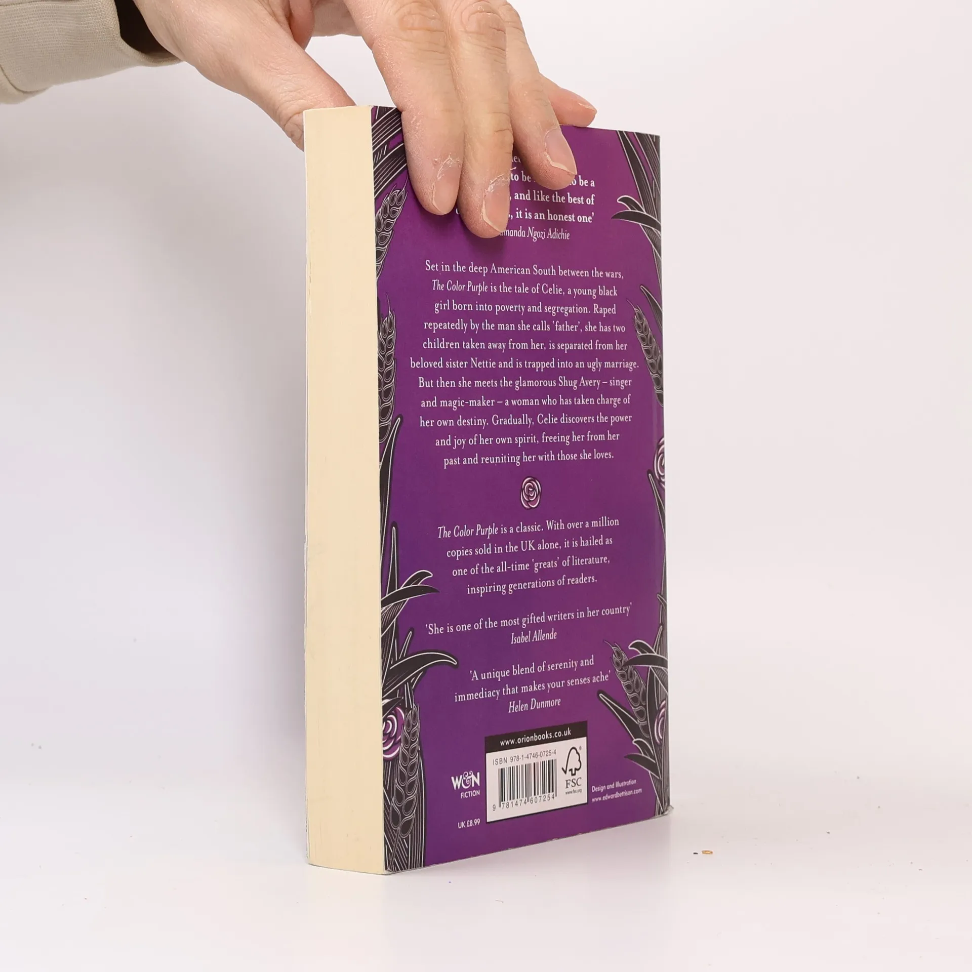 Set in the deep American South between the wars, The Color Purple is the tale of Celie, a young black girl born into poverty and segregation. Raped repeatedly by the man she calls 'father', she has two children taken away from her, is separated from her beloved sister Nettie and is trapped into an ugly marriage. But then she meets the glamorous Shug Avery — singer and magic-maker — a woman who has taken charge of her own destiny. Gradually, Celle discovers the power and joy of her own spirit, freeing her from her past and reuniting her with those she loves.