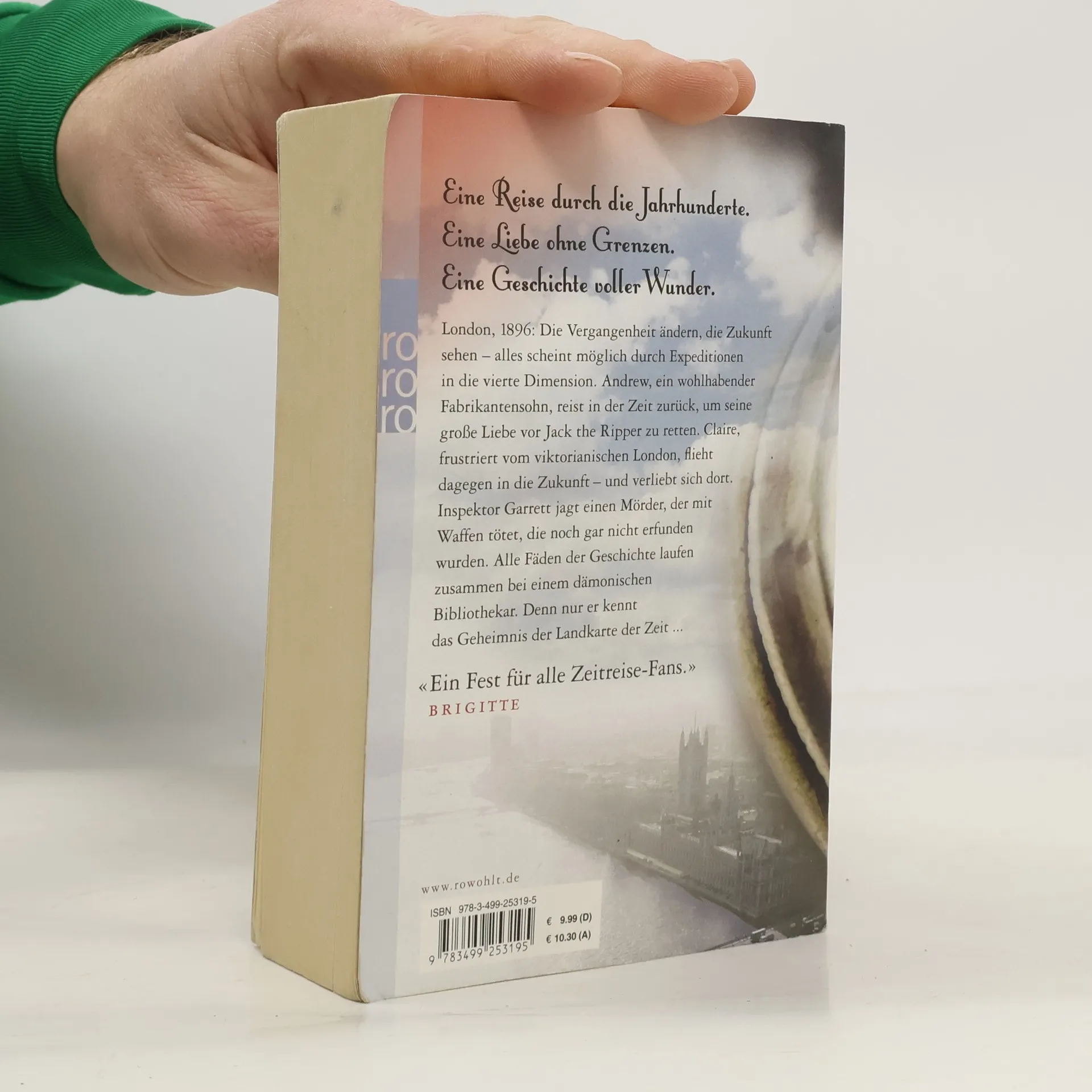 Eine Reise durch die Jahrhunderte. Eine Liebe ohne Grenzen. Eine Geschichte voller Wunder.London, 1896: Die Vergangenheit ändern, die Zukunft sehen – alles scheint möglich durch Expeditionen in die vierte Dimension. Andrew, ein wohlhabender Fabrikantensohn, reist in der Zeit zurück, um seine große Liebe vor Jack the Ripper zu retten. Claire, frustriert vom viktorianischen London, flieht dagegen in die Zukunft – und verliebt sich dort. Inspektor Garrett jagt einen Mörder, der mit Waffen tötet, die noch gar nicht erfunden wurden. Alle Fäden der Geschichte laufen zusammen bei einem dämonischen Bibliothekar. Denn nur er kennt das Geheimnis der Landkarte der Zeit ...Ein Fest für alle Zeitreise-Fans.» brigitte