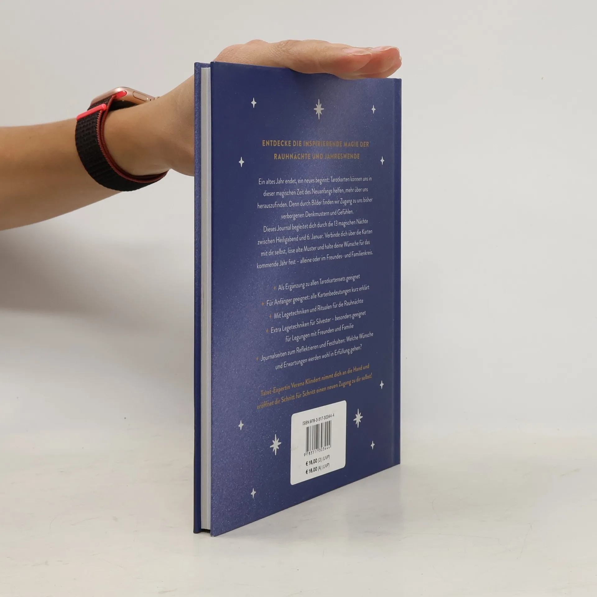 Entdecke die inspirierende Magie der Rauhnächte und Jahreswende Ein altes Jahr endet, ein neues beginnt: Tarotkarten können uns in dieser magischen Zeit des Neuanfangs helfen, mehr über uns herauszufinden. Denn durch Bilder finden wir Zugang zu uns bisher verborgenen Denkmustern und Gefühlen. Dieses Journal begleitet dich durch die 12 magischen Nächte zwischen Heiligabend und 6. Januar. Verbinde dich über die Karten mit dir selbst, löse alte Muster und halte deine Wünsche für das kommende Jahr fest – alleine oder im Freundes- und Familienkreis. - Als Ergänzung zu allen Tarotkartensets geeignet - Für Anfänger geeignet: alle Kartenbedeutungen kurz erklärt - Mit Legetechniken und Ritualen für die Rauhnächte - Extra Legetechniken für Silvester – besonders geeignet für Legungen mit Freunden und Familie - Journalseiten zum Reflektieren und Festhalten: Welche Wünsche und Erwartungen werden wohl in Erfüllung gehen? Tarot-Expertin Verena Klindert nimmt dich an die Hand und eröffnet dir Schritt für Schritt einen neuen Zugang zu dir selbst!