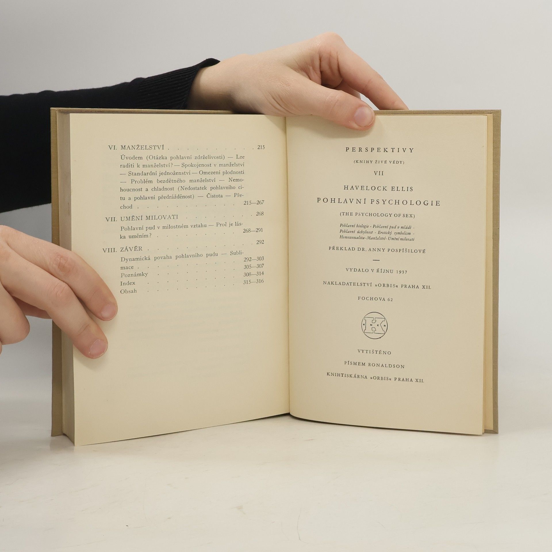 Obsahuje: Pohlavní biologie ; Pohlavní pud v mládí ; Pohlavní úchylnost ; Erotický symbolism ; Homosexualita ; Manželství ; Umění milovati.