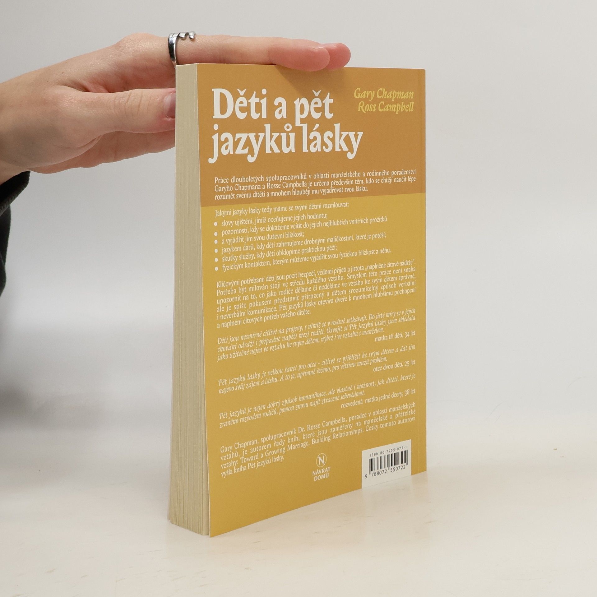 Práce dlouholetých spolupracovníků v oblasti manželského a rodinného poradenství Garyho Chapmana a Rosse Campbella je určena především těm, kdo se chtějí naučit lépe rozumět svému dítěti a mnohem hlouběji mu vyjadřovat svou lásku.