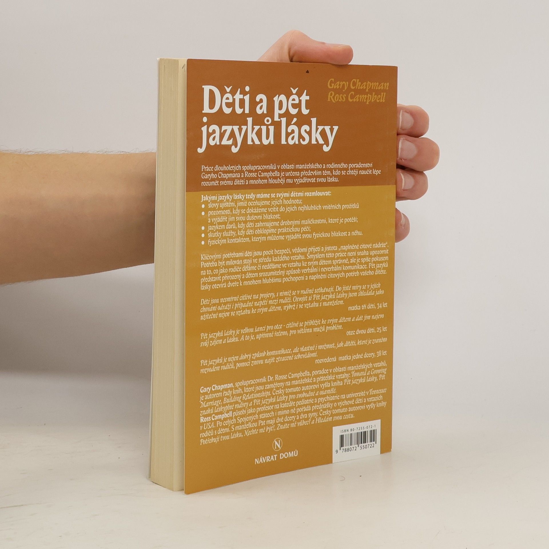 Práce dlouholetých spolupracovníků v oblasti manželského a rodinného poradenství Garyho Chapmana a Rosse Campbella je určena především těm, kdo se chtějí naučit lépe rozumět svému dítěti a mnohem hlouběji mu vyjadřovat svou lásku.