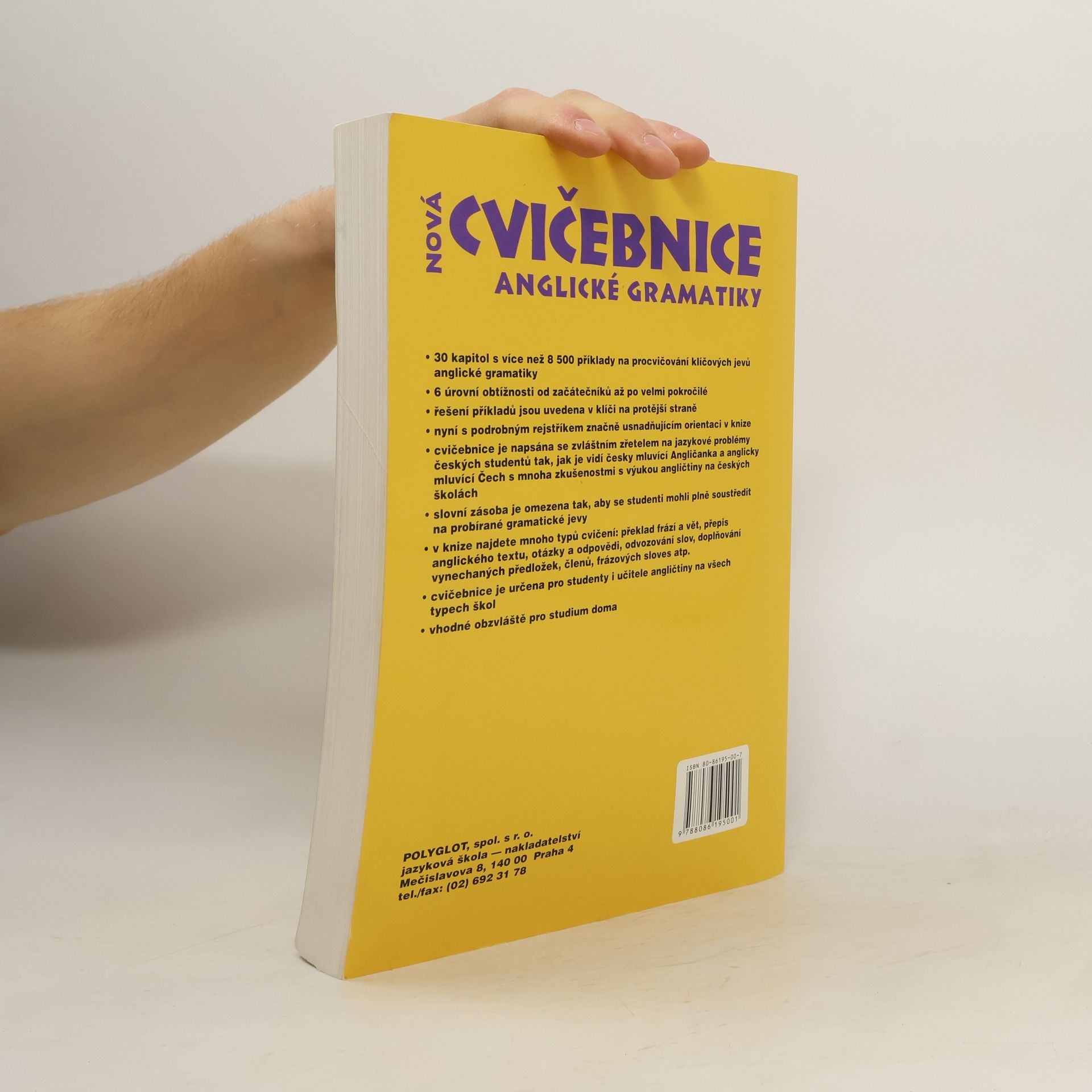 Cvičebnice je doplňkovým materiálem k jazykovým učebnicím. Neobsahuje výklad gramatiky, ale příklady k intenzivnímu procvičování gramatických a lexikálních jevů. Určena pro studenty všech úrovní, vhodná i pro samouky, neboť ke každému cvičení je na protější straně uvedeno řešení. Každá kapitola je rozdělena do několika úrovní pokročilosti. V úrovni A se procvičují jevy, s nimiž se začátečník setká zhruba v prvních měsících studia, ať už se bude učit z kterékoli učebnice. Se zvyšující se úrovní roste i lexikální náročnost cvičení. Cvičebnice svým obsahem přesahují středoškolskou úroveň. V 30 kapitolách najdete přes 8500 příkladů rozdělených do překladových a doplňovacích cvičení. Student se musí zároveň soustředit na slovní zásobu, gramatiku, slovosled, interpunkci a další aspekty jazyka. Důraz je kladen i na problémy specifické pro české studenty (časová souslednost, předložky, vazba there is / are…).... celý text
