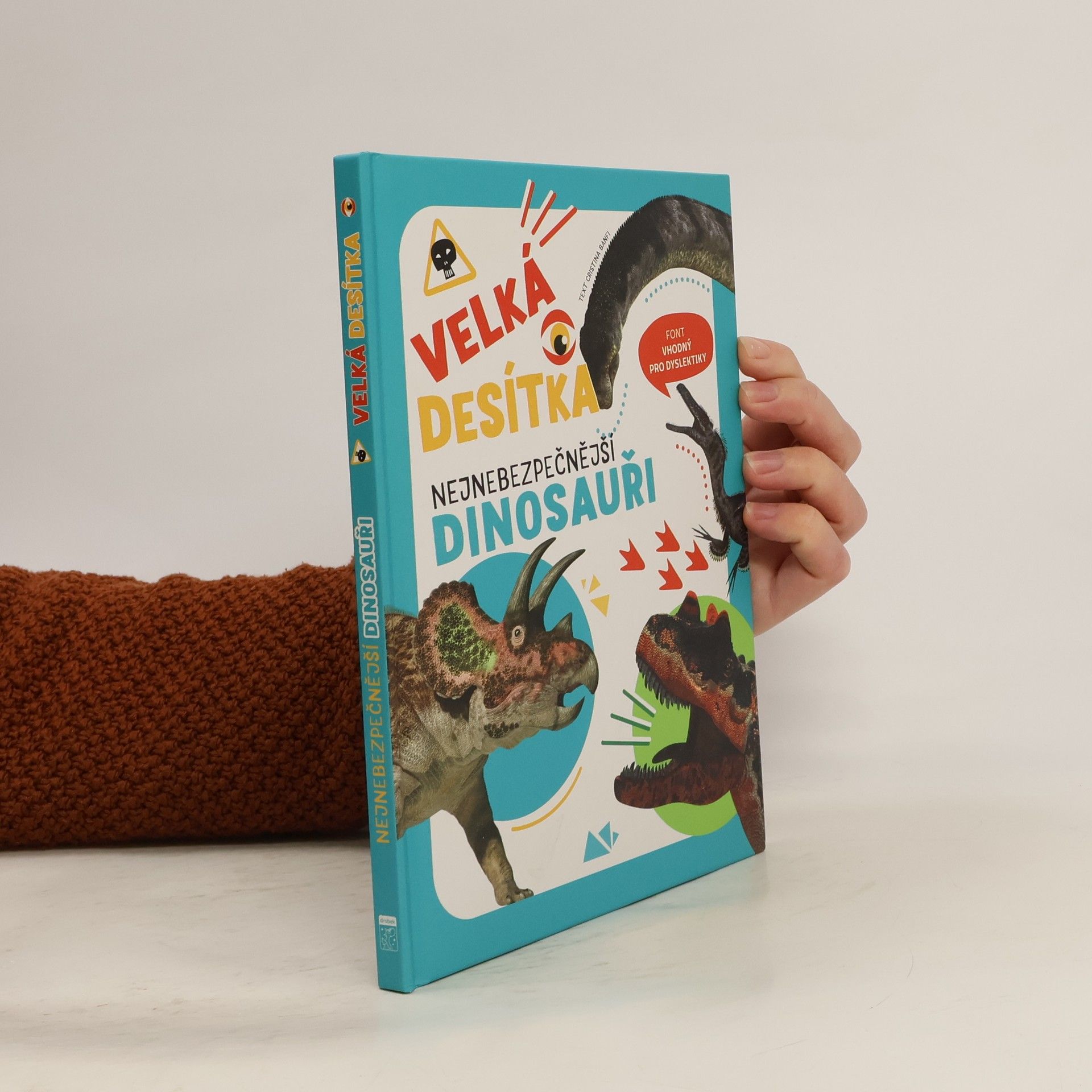 Nová série Velká desítka představuje dětem širokou škálu témat způsobem, který zapojuje jejich přirozené nadšení a zvědavost. Myslíte, že zvládnete vyjmenovat desítku těch největších zabijáků mezi dinosaury? Určitě si představujete obrovské masožravce jako je Tyrannosaurus Rex. Ale věděli jste, že ne vždy zvítězí hrubá síla? Neočekávaná skrytá zbraň použitá ve správný čas může být občas ještě efektivnější a ničivější. S ní se i mírumilovný, býložravý dinosaurus může proměnit ve stroj smrti! I když si myslíte, že už všechno víte, čtěte dál. Čekají vás překvapení – a to pořádně nebezpečná! Začneme u desítky a dostaneme se až k hrozivé jedničce. V každé knize odhalují texty nečekané zajímavosti a úžasné informace o světě kolem nás na základě všeobecných informací.