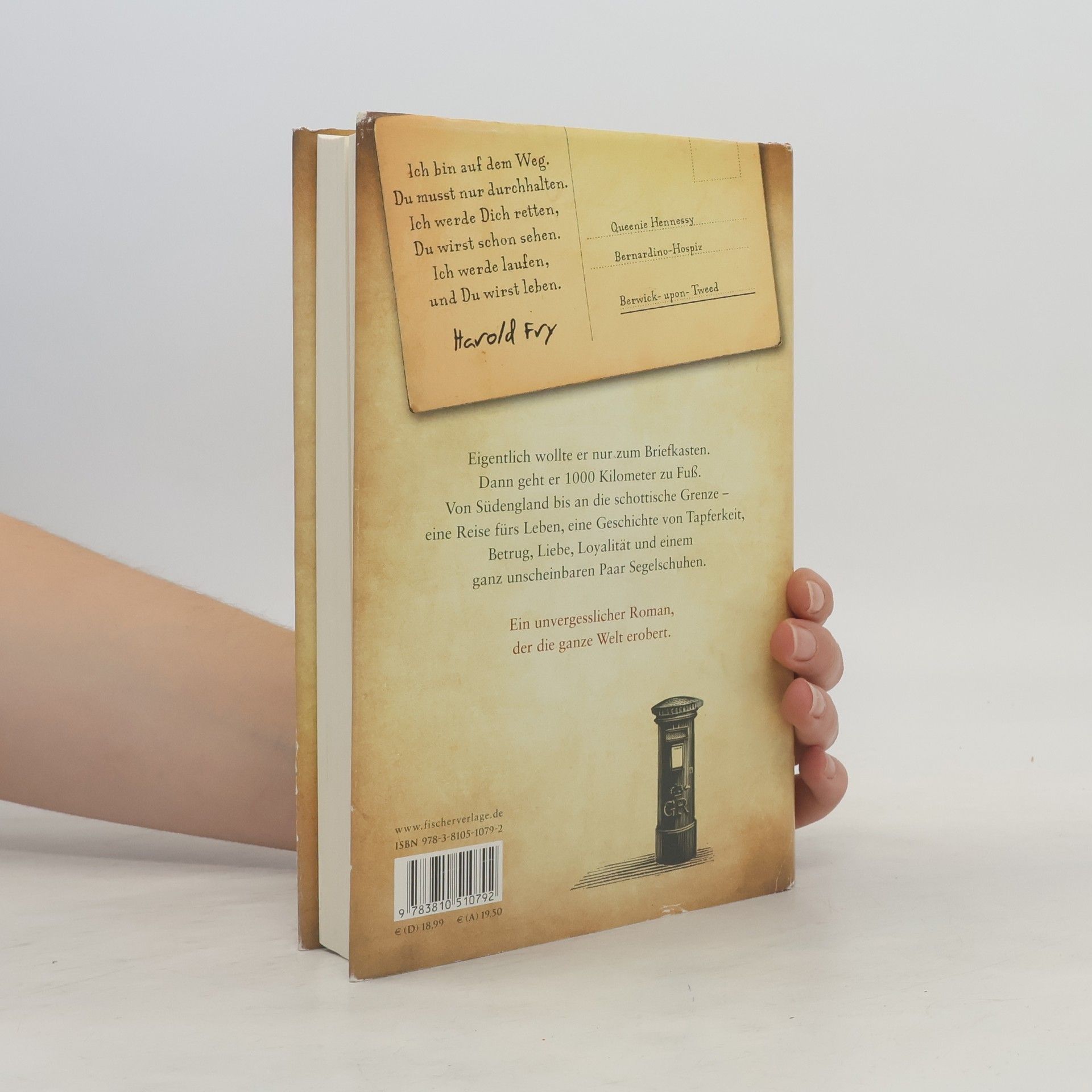 Eigentlich wollte er nur zum Briefkasten. Dann geht er 1000 Kilometer zu Fuß. Ein unvergesslicher Roman, der die ganze Welt erobert. 'Ich bin auf dem Weg. Du musst nur durchhalten. Ich werde Dich retten, Du wirst schon sehen. Ich werde laufen, und Du wirst leben.' Harold Fry will nur kurz einen Brief einwerfen an seine frühere Kollegin Queenie Hennessy, die im Sterben liegt. Doch dann läuft er am Briefkasten vorbei und auch am Postamt, aus der Stadt hinaus und immer weiter, 87 Tage, 1000 Kilometer. Zu Fuß von Südengland bis an die schottische Grenze zu Queenies Hospiz. Eine Reise, die er jeden Tag neu beginnen muss. Für Queenie. Für seine Frau Maureen. Für seinen Sohn David. Für sich selbst. Und für uns alle. Ein ganz außergewöhnlicher und tief berührender Roman – über Geheimnisse, besondere Momente und zufällige Begegnungen, die uns von Grund auf verändern. Über Tapferkeit und Betrug, Liebe und Loyalität und ein ganz unscheinbares Paar Segelschuhe. Auf der Longlist des Booker-Preises 2012.