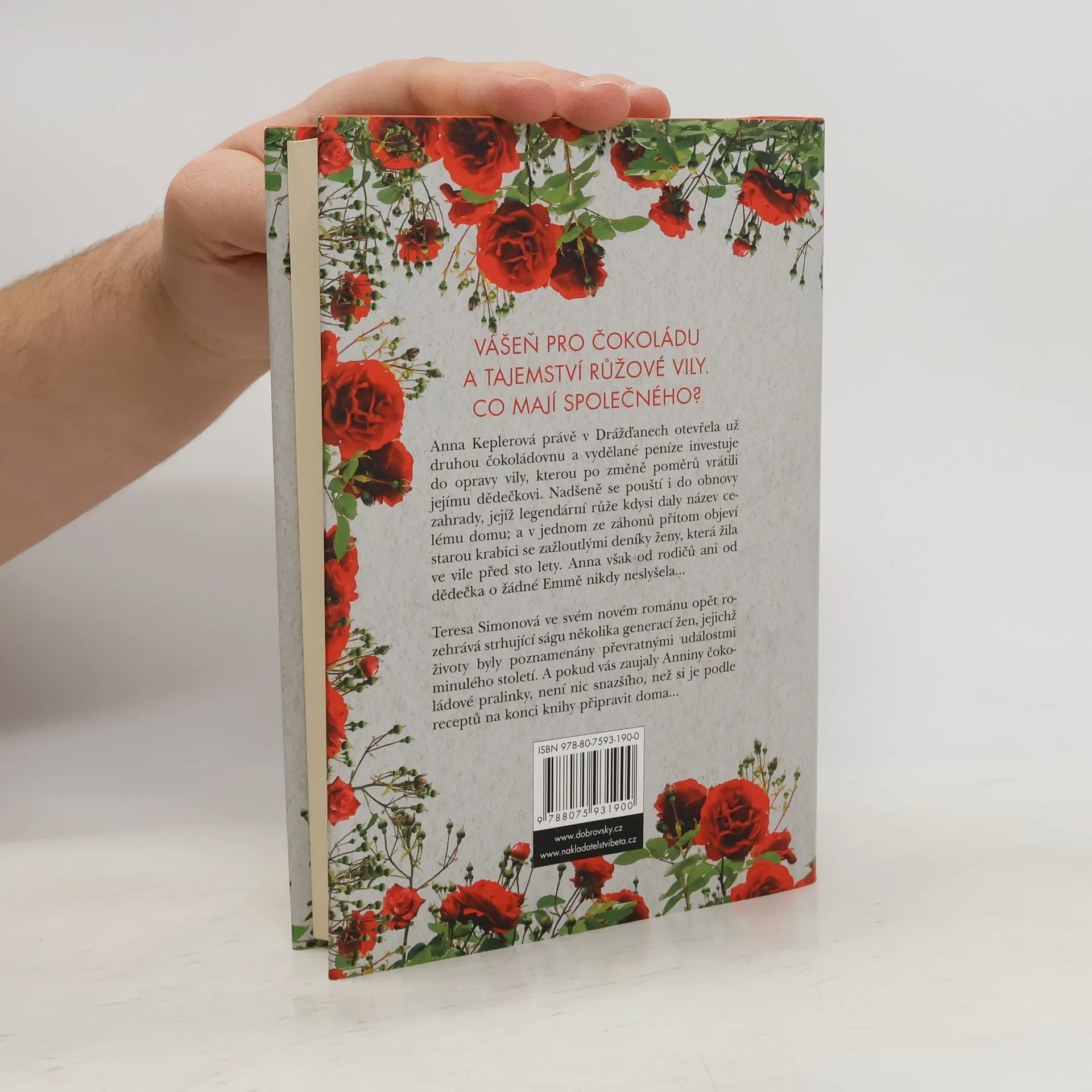 Uprostřed růžové zahrady se skrývá tajemství ... Anna Keplerová, dědička staré dynastie výrobců cukrovinek si v drážďanském starém městě otevřela svou již druhou čokoládovnu a nastěhovala se do rodinné vily, kterou konečně získala zpět. Nadšeně se pouští do obnovy zahrady, jejíž legendární růže kdysi daly název celému domu, a přitom v jednom ze záhonů objeví starou krabici. Ukrývá zažloutlý deník ženy, která žila ve vile před sto lety. Anna však od rodičů ani od dědečka o této Emmě nikdy neslyšela… Teresa Simonová ve svém novém románu opět rozehrává strhující ságu několika generací žen, jejichž životy byly poznamenány událostmi posledních století, a především oběma světovými válkami.