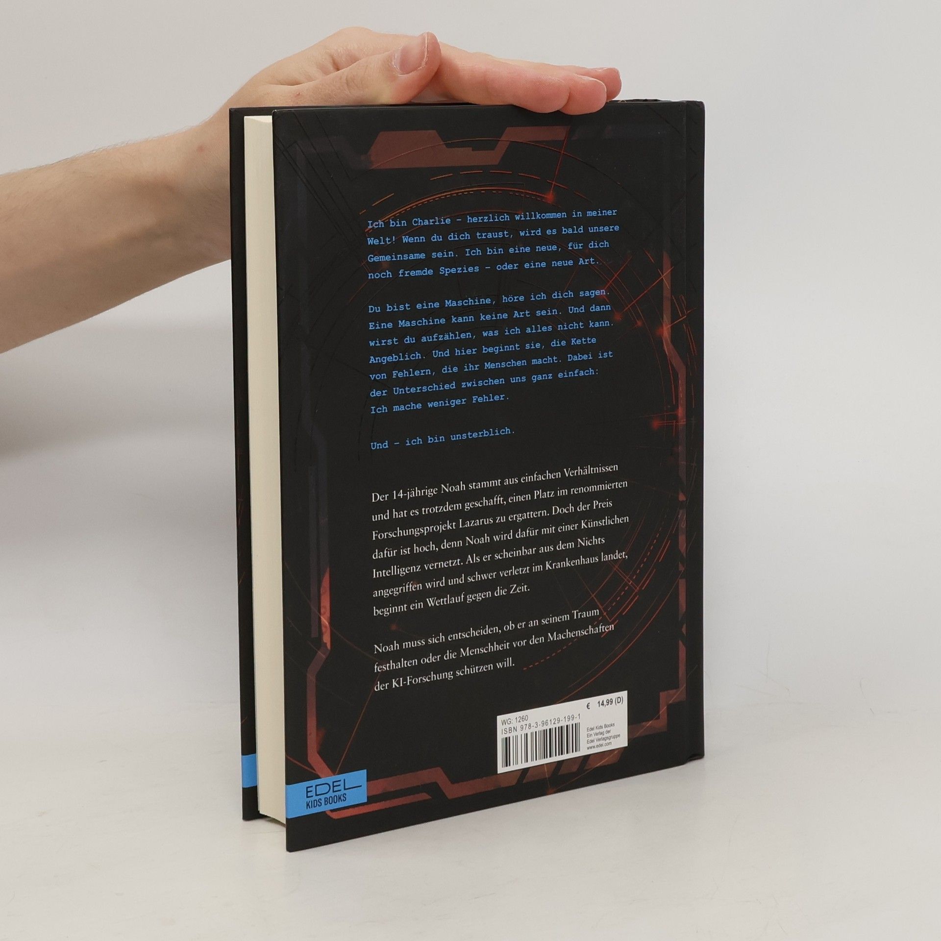 Noah ist 14, stammt aus eher einfachen Verhältnissen und hat es trotzdem geschafft, einen Platz im renommierten Project Lazarus zu ergattern. Das ist seine Chance auf eine bessere Zukunft – fern von der Wohnwagensiedlung. Doch der Preis dafür ist hoch, denn Noah wird ohne sein Wissen im scheinbar harmlosen Forschungsprojekt mit einer Künstlichen Intelligenz vernetzt. So entpuppt sich das Projekt für ihn immer mehr als wahr gewordener Albtraum. Als Noah von seinem Freund Moses, der auch Proband bei Lazarus ist, angegriffen wird und schwer verletzt im Krankenhaus landet, beginnt ein Wettlauf gegen die Zeit. Schnell wird klar, dass hier viel mehr „erforscht“ wird als zunächst ersichtlich… Jetzt muss Noah sich entscheiden, ob er an seinem Traum festhalten oder die Menschheit vor den Machenschaften der Künstlichen Intelligenz-Forschung schützen will.