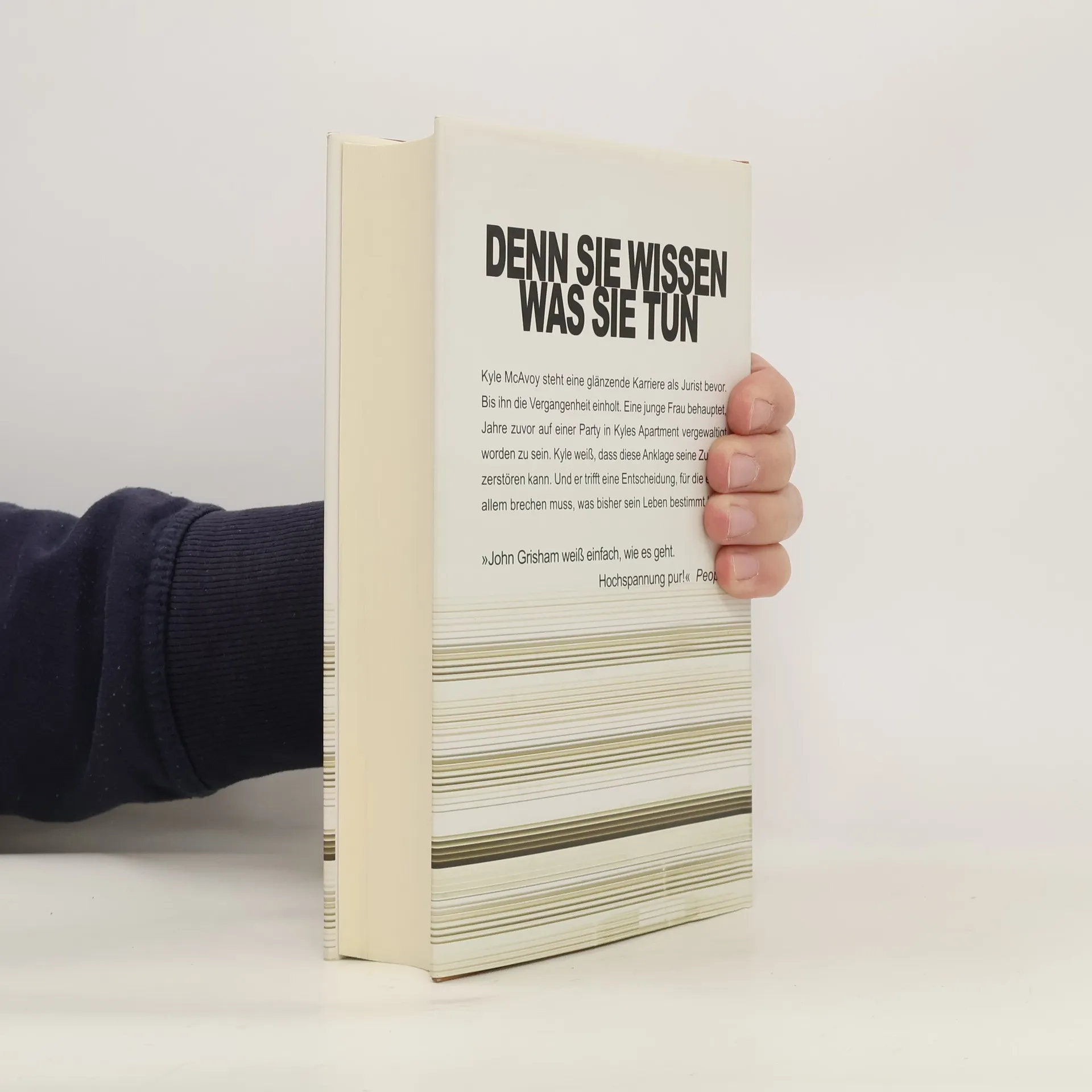 Denn sie wissen, was sie tun Kyle McAvoy steht eine glänzende Karriere als Jurist bevor. Bis ihn die Vergangenheit einholt. Eine Frau behauptet, Jahre zuvor auf einer Party in Kyles Wohnung vergewaltigt worden zu sein. Kyle weiß, dass diese Anklage seine Zukunft zerstören kann. Und er trifft eine Entscheidung, für die er mit allem brechen muss, was bisher sein Leben bestimmt hat. Der neue Grisham – ein Thriller um Macht, Korruption und eine Welt, der jegliche Moral abhandengekommen ist. Noch eine Prüfung, dann hat Kyle McAvoy sein Examen in der Tasche. Die Welt liegt dem brillanten Juristen zu Füßen, schon jetzt kann er sich vor Angeboten der renommiertesten Kanzleien kaum retten. Kyle aber geht es nicht um Macht und Profit, er möchte sein Wissen in den Dienst der Öffentlichkeit stellen. Doch bevor er über seine Zukunft entscheiden kann, droht ihm die Vergangenheit zum Verhängnis zu werden. Eine Episode aus Collegezeiten, die er nur zu gern vergessen hätte. Die falschen Leute erfahren davon und erpressen ihn. Kyle wird gezwungen, einen Job anzunehmen, für den sich jeder andere Jurist ein Bein ausreißen würde. Er wird Partner bei Scully & Pershing, der mächtigsten Anwaltskanzlei der Welt. Noch bevor Kyle in Erfahrung bringen kann, was seine Erpresser mit diesem Auftrag bezwecken, gerät seine Welt zum Alptraum, der ihn die Freiheit, wenn nicht das Leben kosten könnte.