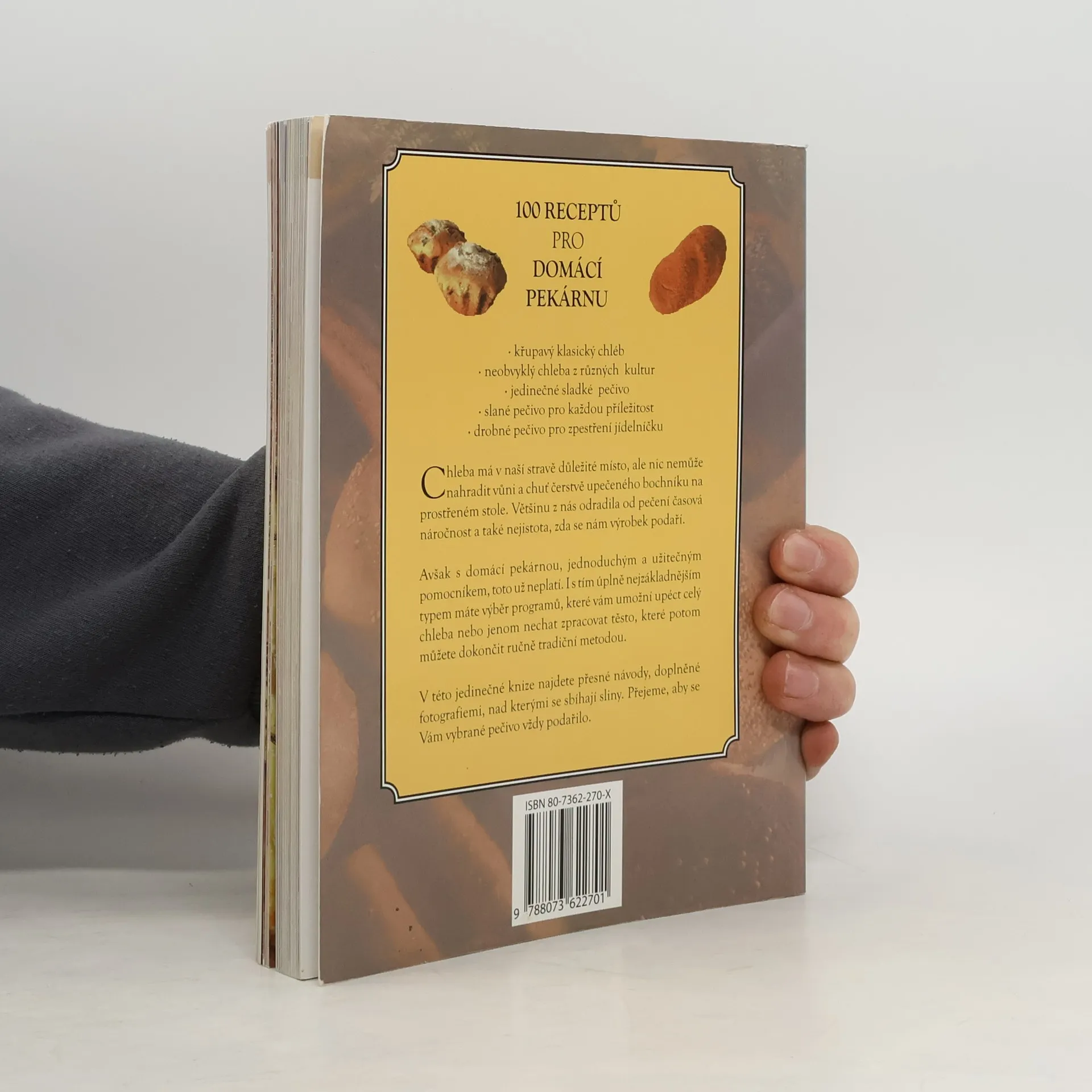 Myslíte si, že koupený chleba není to pravé? Rádi byste ochutnali netradiční pečivo? Upečte si ho sami! Pomocí této knihy se vám to zaručeně povede! Najdete v ní 100 zajímavých a jednoduchých receptů na chleby, slané i sladké pečivo a rozmanité druhy drobného pečiva s různými náplněmi či příchutěmi. V pečicí troubě, která se stala hitem mezi pomocníky v domácnosti, je snadné vykouzlit opravdové delikatesy. Nechte se inspirovat a uvidíte, že i pečení může být zábava.