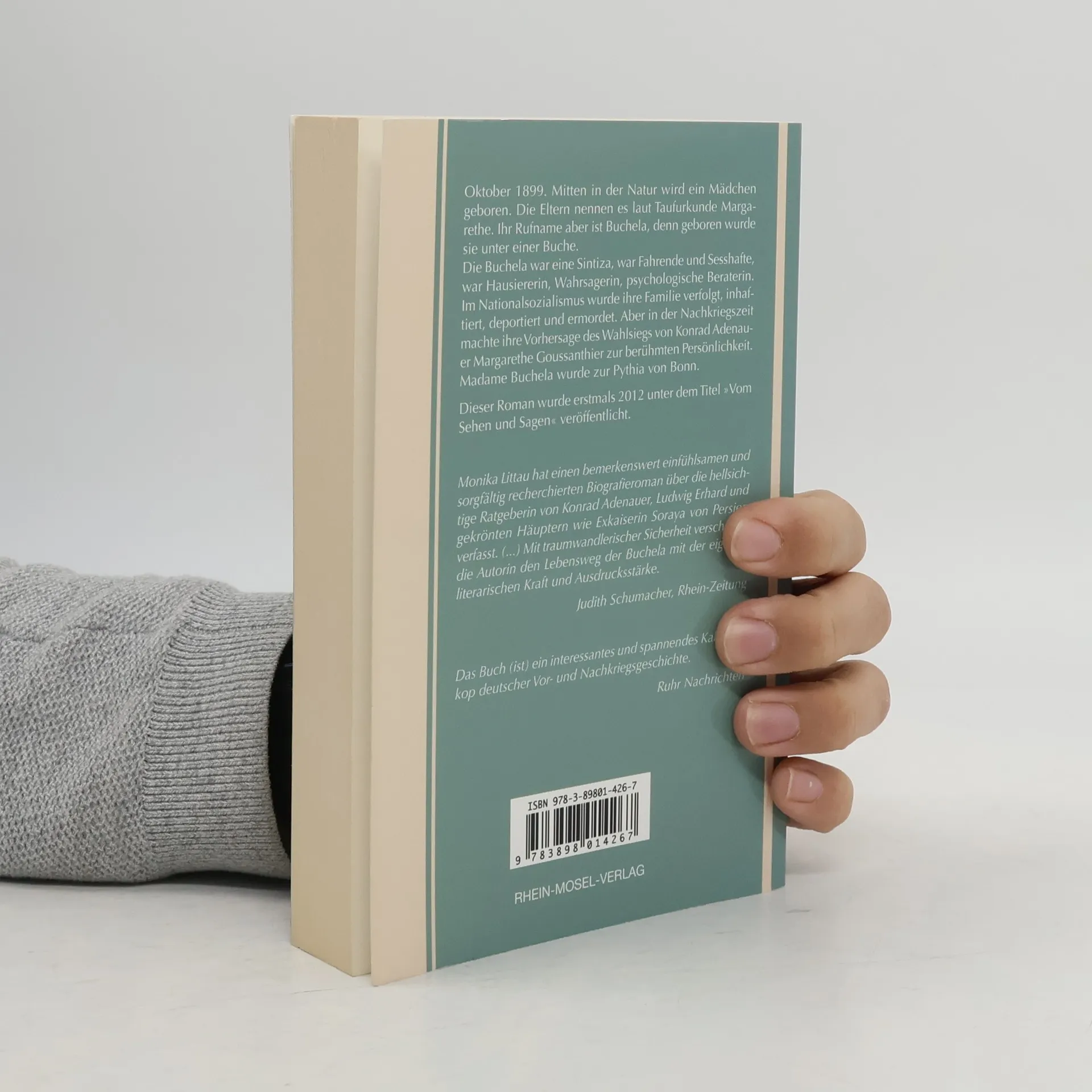 Oktober 1899. Mitten in der Natur wird ein Mädchen geboren. Die Eltern nennen es laut Taufurkunde Margarethe. Ihr Rufname aber ist Buchela, denn geboren wurde sie unter einer Buche. Die Buchela war eine Sintiza, war Fahrende und Sesshafte, war Hausiererin, Wahrsagerin, psychologische Beraterin. Im Nationalsozialismus wurde ihre Familie verfolgt, inhaftiert, deportiert und ermordet. Aber in der Nachkriegszeit machte ihre Vorhersage des Wahlsiegs von Konrad Adenauer Margarethe Goussanthier zur berühmten Persönlichkeit. Madame Buchela wurde zur Pythia von Bonn. Dieser Roman wurde erstmals 2012 unter dem Titel »Vom Sehen und Sagen« veröffentlicht.