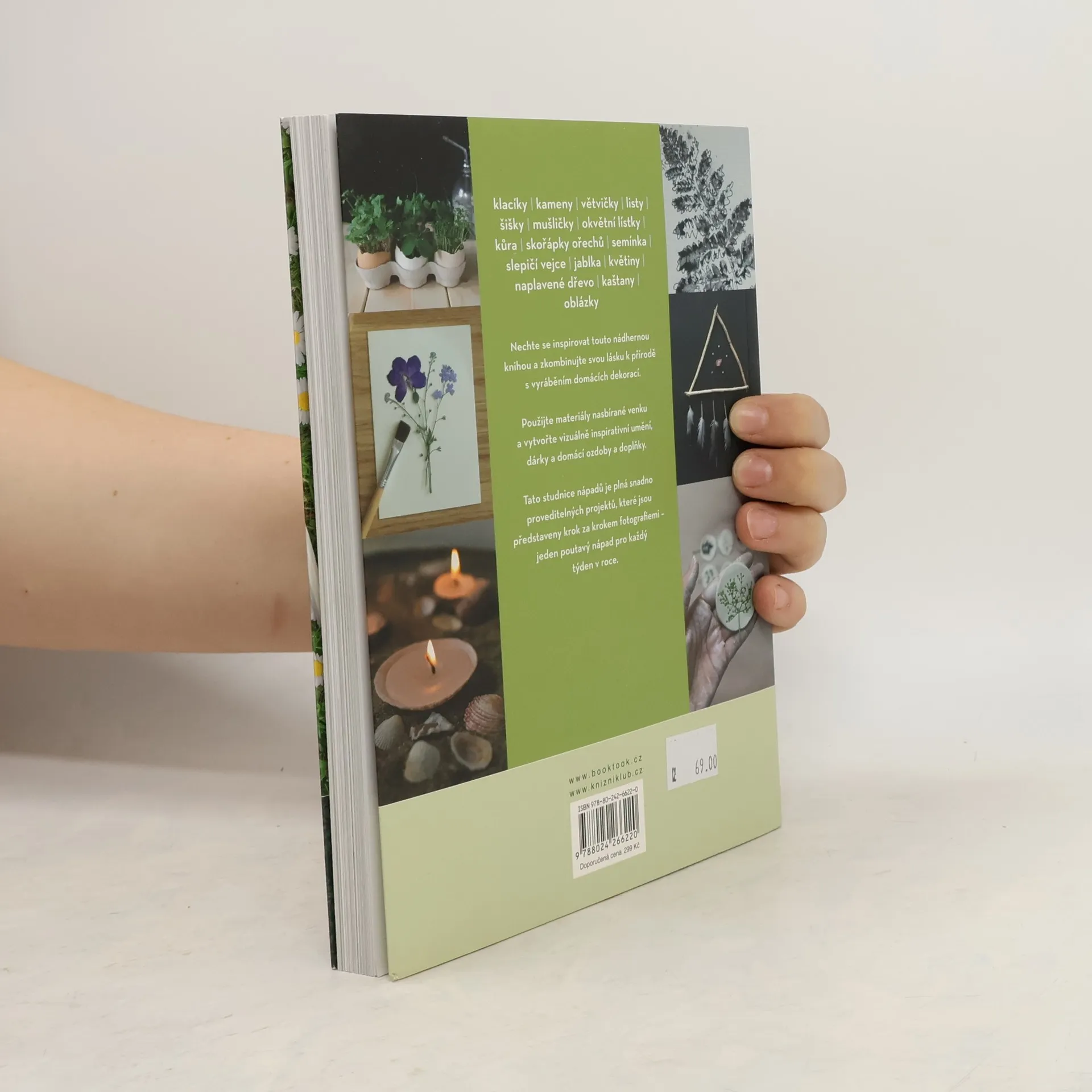 Nechte se inspirovat touto knihou a zkombinujte svou lásku k přírodě s vyráběním domácích dekorací. Použijte materiály nasbírané venku a vytvořte vizuálně inspirativní umění, dárky a domácí ozdoby a doplňky. Tato studnice nápadů je plná snadno proveditelných projektů, které jsou představeny krok za krokem fotografiemi – jeden poutavý nápad pro každý týden v roce. Projekty jsou dále rozděleny podle ročních období, takže se můžete těšit i na speciální velikonoční, vánoční nebo halloweenské radosti.