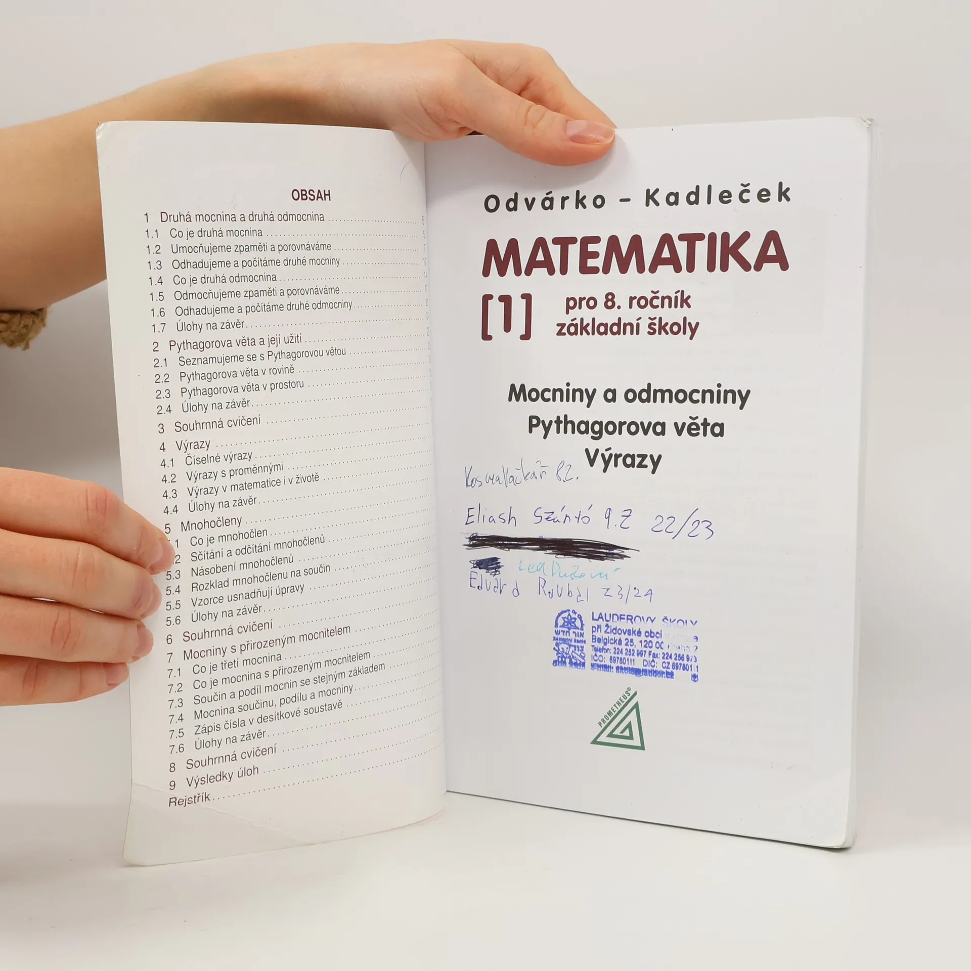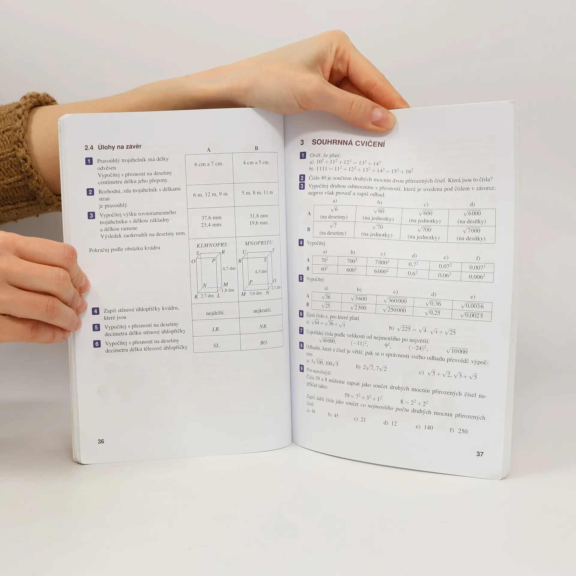 Mocniny a odmocniny, Pythagorova věta. Učebnice je součástí přepracované řady učebnic matematiky. Upravené vydání ještě lépe odpovídá RVP, obsahuje aktuálnější údaje a je pro žáky atraktivnější i vzhledem k nové grafické úpravě. Upravené učebnice zachovávají koncepci původní řady, která je aktualizována (měna při placení nákupů, výše cen atd.). Je zařazena i řada nových úloh ukazujících důležitost matematických poznatků pro život a podněcujících žáky k plnění různých úkolů a vyhledávání informací. Jsou posíleny nestandardní aplikační úlohy a problémy (např. rozvoj geometrické představivosti, kombinatorické úlohy). Mnohé úlohy vedou k zamyšlení nad problémy, které souvisejí s životním prostředím (např. úsporné žárovky, kouření).
