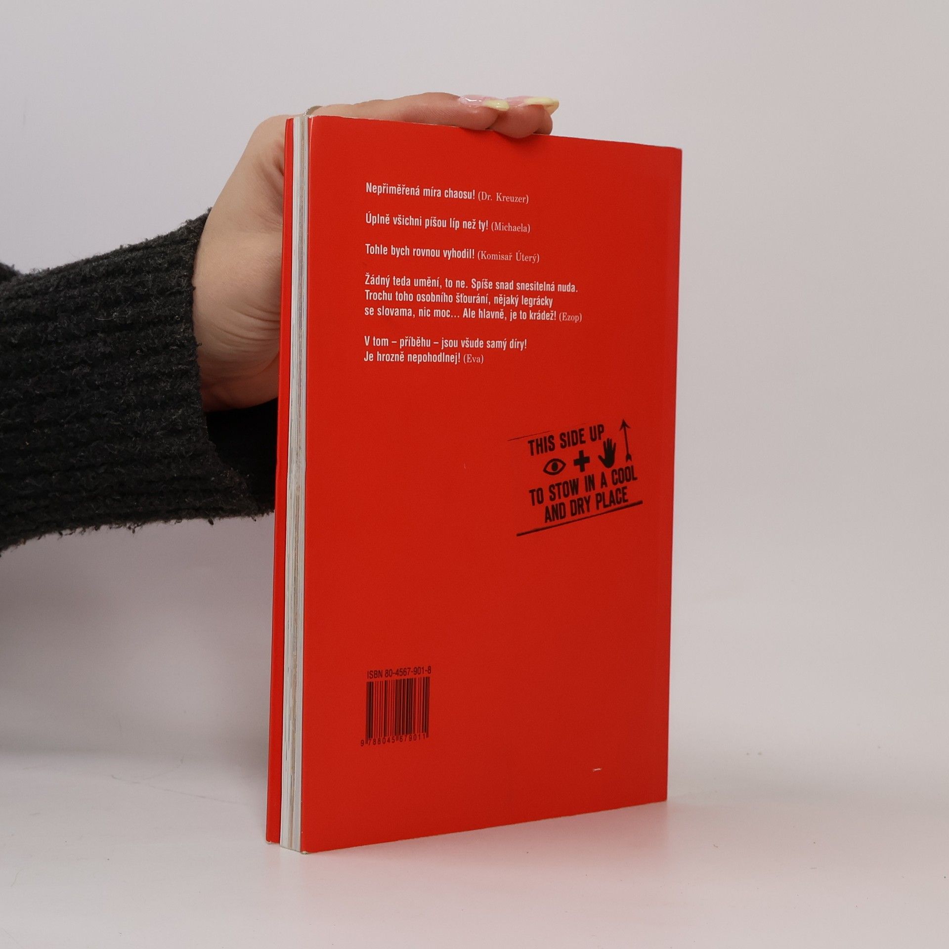 Pod divokým i hravým povrchem publikace se skrývá intimní příběh o hledání vlastní dospělosti s břitvou v ruce, nad kterým se tají dech. Ze svého trojjediného talentu dramatika, lyrika a výtvarníka vytěžil E. L.Tobiáš originální a zralou prozaickou prvotinu, která se vzpírá žánrovému zařazení a poskytuje mimořádně silný čtenářský zážitek. Kniha je ojedinělým autorským artefaktem, v němž se text kongeniálně doplňuje s barevnými ilustracemi a experimentální grafickou úpravou.... celý text
