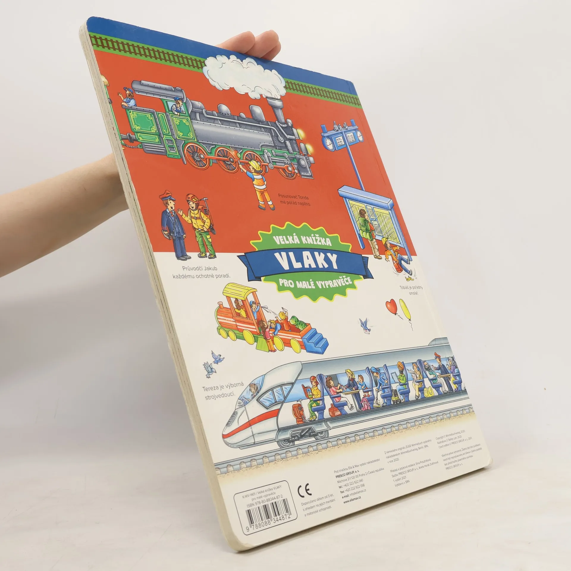 Tohle velkoformátové obrázkové leporelo ocení především fanoušci vlakové dopravy. Do světa lokomotiv, vagonů, kolejnic a nádraží se podívají velmi zblízka na úžasných detailních ilustracích. Seznámí se s těmi, kdo na železnici pracují, s cestujícími se vydají na fascinující výlet historickým vláčkem nebo nejmodernějším rychlíkem. Pojedou dnem i nocí, profrčí tunely i mosty. Poznají čilý ruch velkých nádraží i kouzlo malých venkovských stanic… A když se budou dobře dívat, objeví některé hrdiny na každém obrázku v knížce, a tak s nimi mohou prožívat jejich příběhy.
