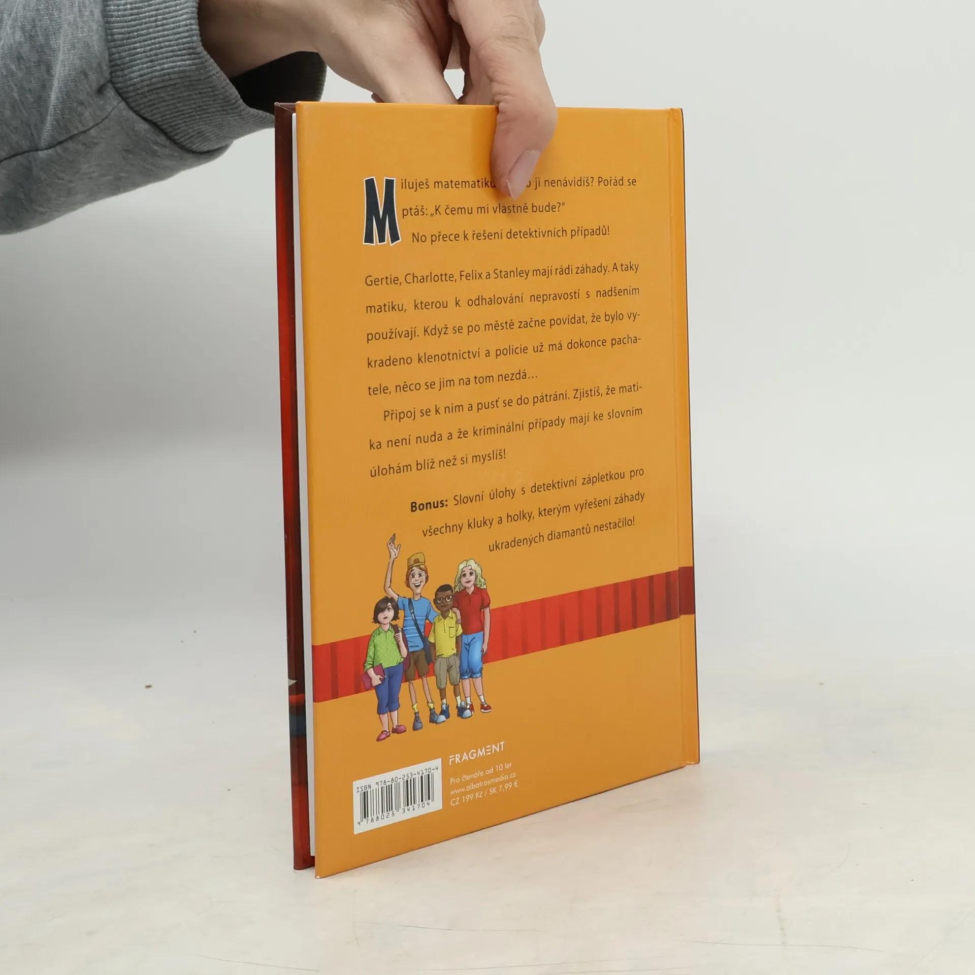 Gertie, Charlotte, Felix a Stanley milují záhady. A taky matiku, kterou k odhalování nepravostí s nadšením používají. Když se po městě začne povídat, že bylo vykradeno klenotnictví a policie už má dokonce pachatele, něco se jim na tom nezdá… Připoj se k nim a pusť se do pátrání. Zjistíš, že matika není nuda a že kriminální případy mají ke slovním úlohám blíž, než si myslíš!