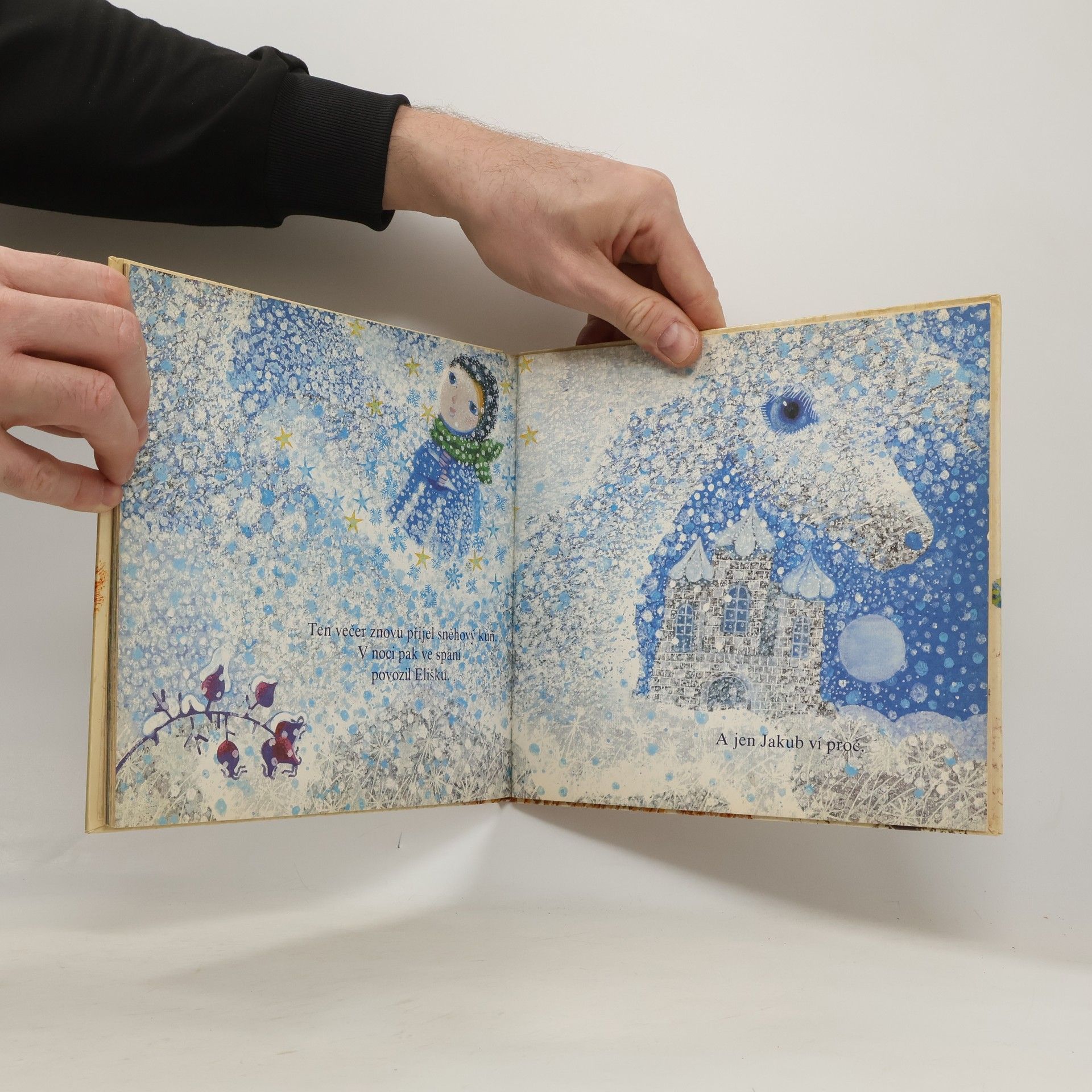 Obrázková kniha se snaží oslovit nejmenší děti ve věku od tří let. Fabuli příběhu, inspirovanou zážitky ze zasněžených zimních dnů a nocí, ukryla spisovatelka do několika motivů ztvárněných lyrizujícími jazykovými prostředky. Tak se autorce podařilo vnést do textu pravou atmosféru příchodu třpytivých vloček, jež vítají děti na prvních stránkách knihy a stávají se tak počátečním impulzem vedoucím ke kontaktu čtenářů s prostředím děje a hlavním hrdinou předškolákem Jakubem.